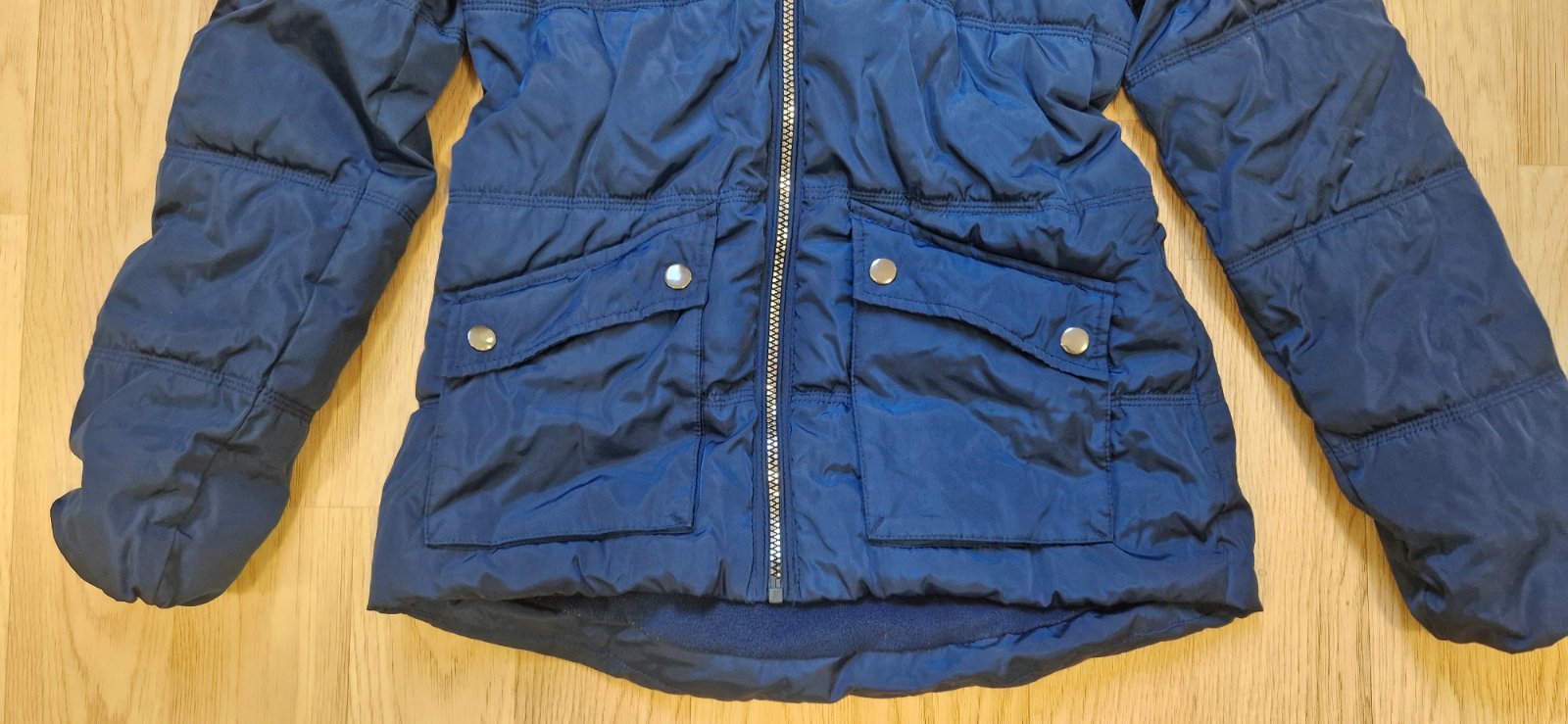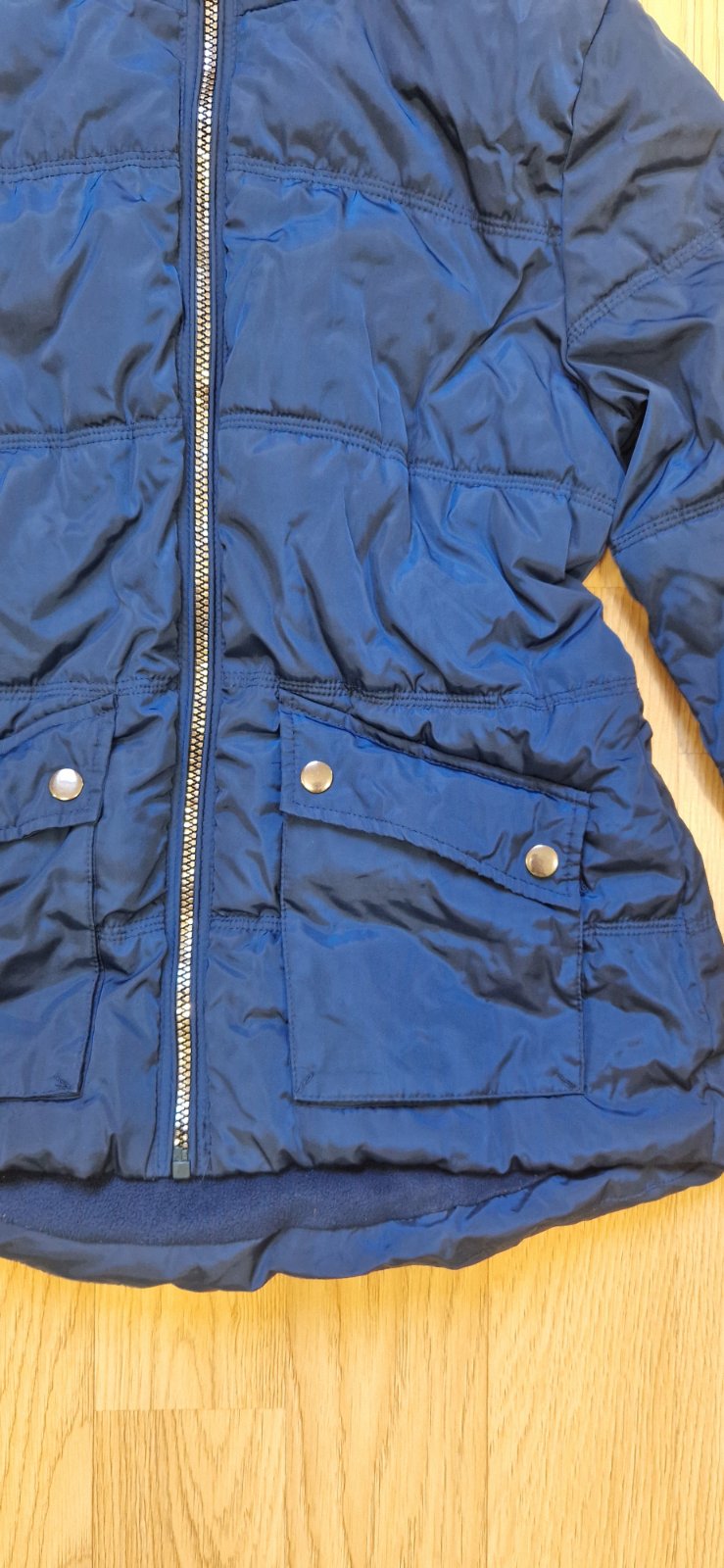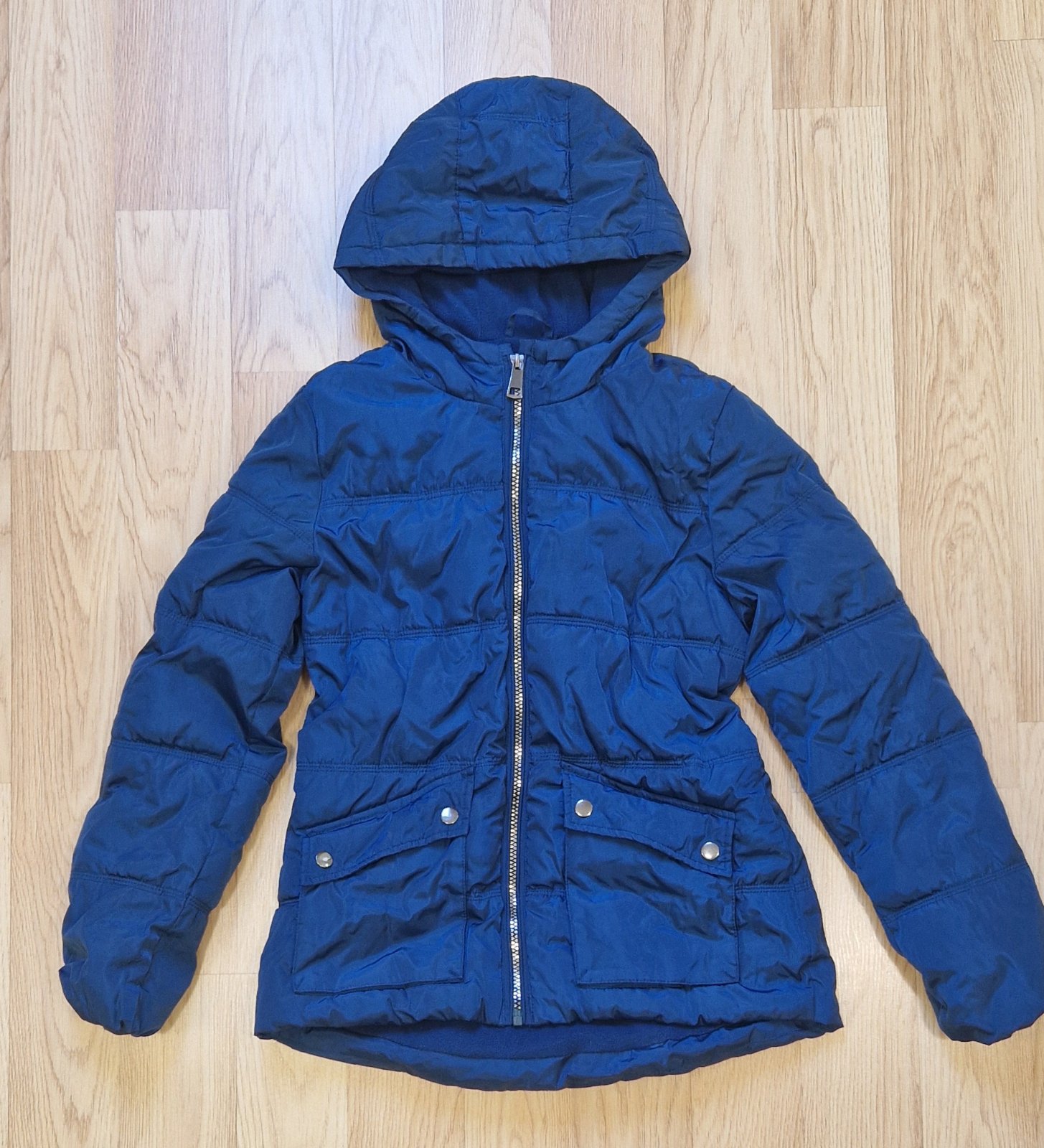 Nosená, teplá zimná bunda s kapucňou. Kapucňa je neodnímateľná, zips OK