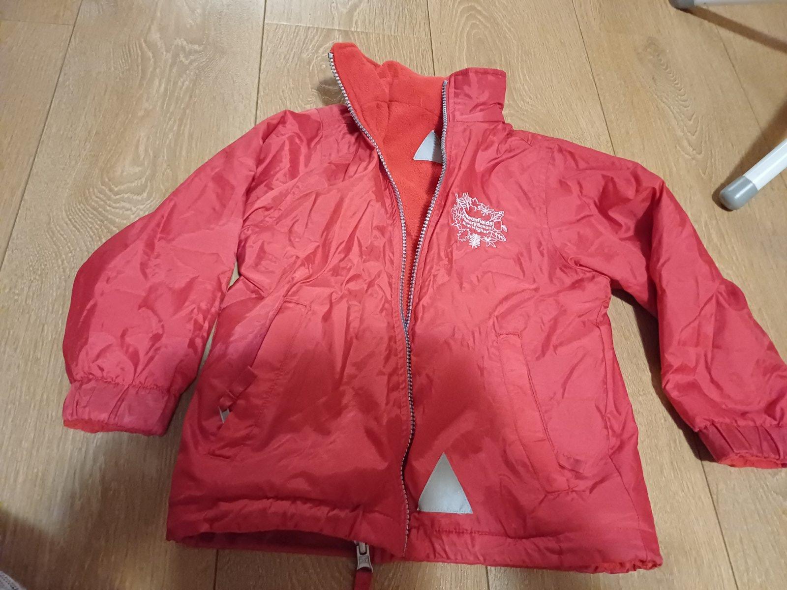 Krásna prechodná bunda, pre otužilejšie detičky vhodná aj na teplejšiu zimu. Výplň je primaloft. Má iba jednu chybičku, zašitú dierku na rukáve, ale vidno to iba veľmi zblízka. Veľkosť je 104, ale ...