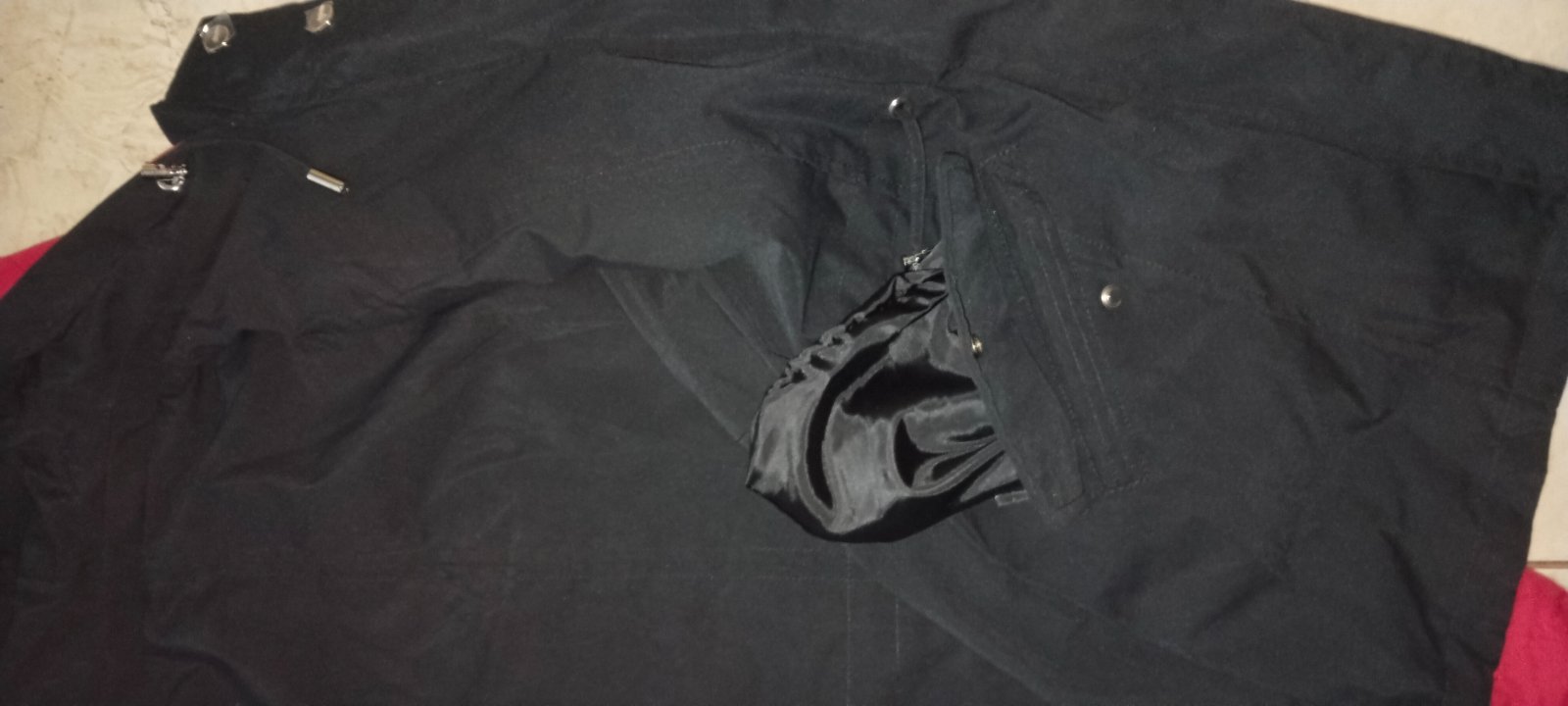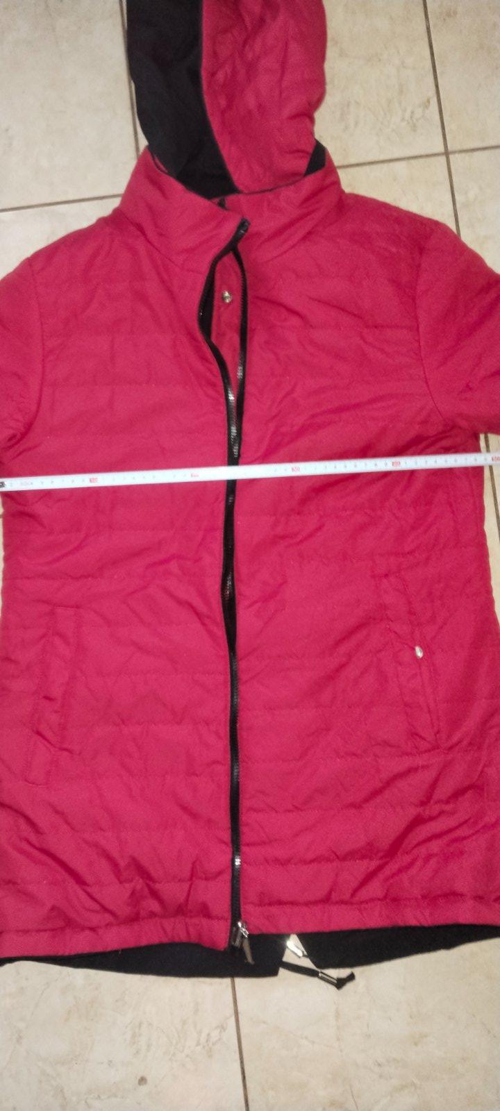 3x príležitostne oblečená, kúpená nesprávna veľkosť, materiál je elegantný, kvalitný a ľahký, rozmery na fotografiách. dievčenská obojstranná: červená či čierna, dievčenské S až M číslo, odložená v skrini, už je mala, pozrieť pozorne fotografie aj s rozmery , kapucňa je na zips dá sa dať dole.Cena v obchode 25 eur.