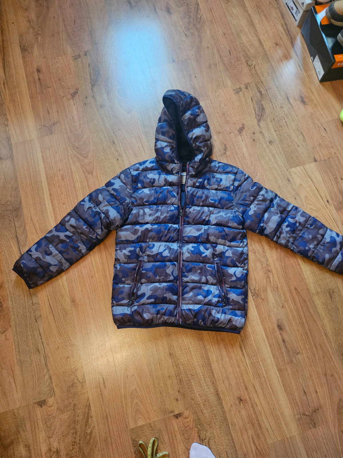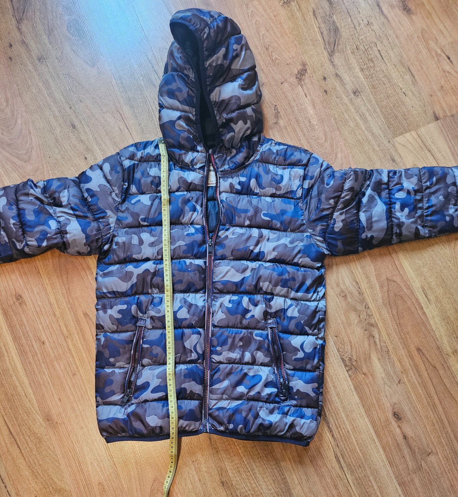 Nosená na striedačku, tenšia ale je teplá. Vzadu dole vľavo malá dierka, zašitá. Uvedená veľkosť 146/152., 11-12 rokov, podľa mňa skôr na 11r.
