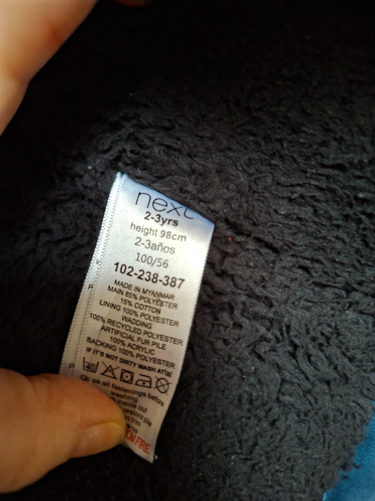 Po mojich dvoch chlapcoch.Pekny noseny stav, sem tam je na nej také ako keby zasklbnute nitky, ale pri nosení to není nejako vidieť.Je naozaj super teplucka.Vnutro flis, je hrubšia. + Pošta