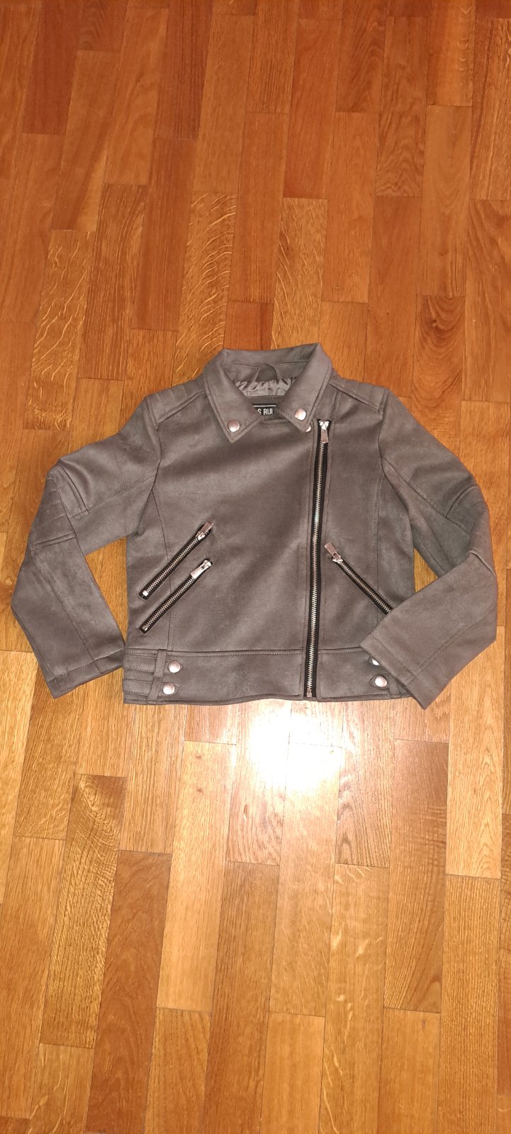Krasna bundicka vo velmi dobrom stave. Je tenka, len podsita. Ma taku sedo-hnedu farbu.Povodne k nej bola aj mikinka, ktora sa zapinala zvnutra, ale ta chyba. ROZMERY: dlzka rukavu od kapucne: 54cm...