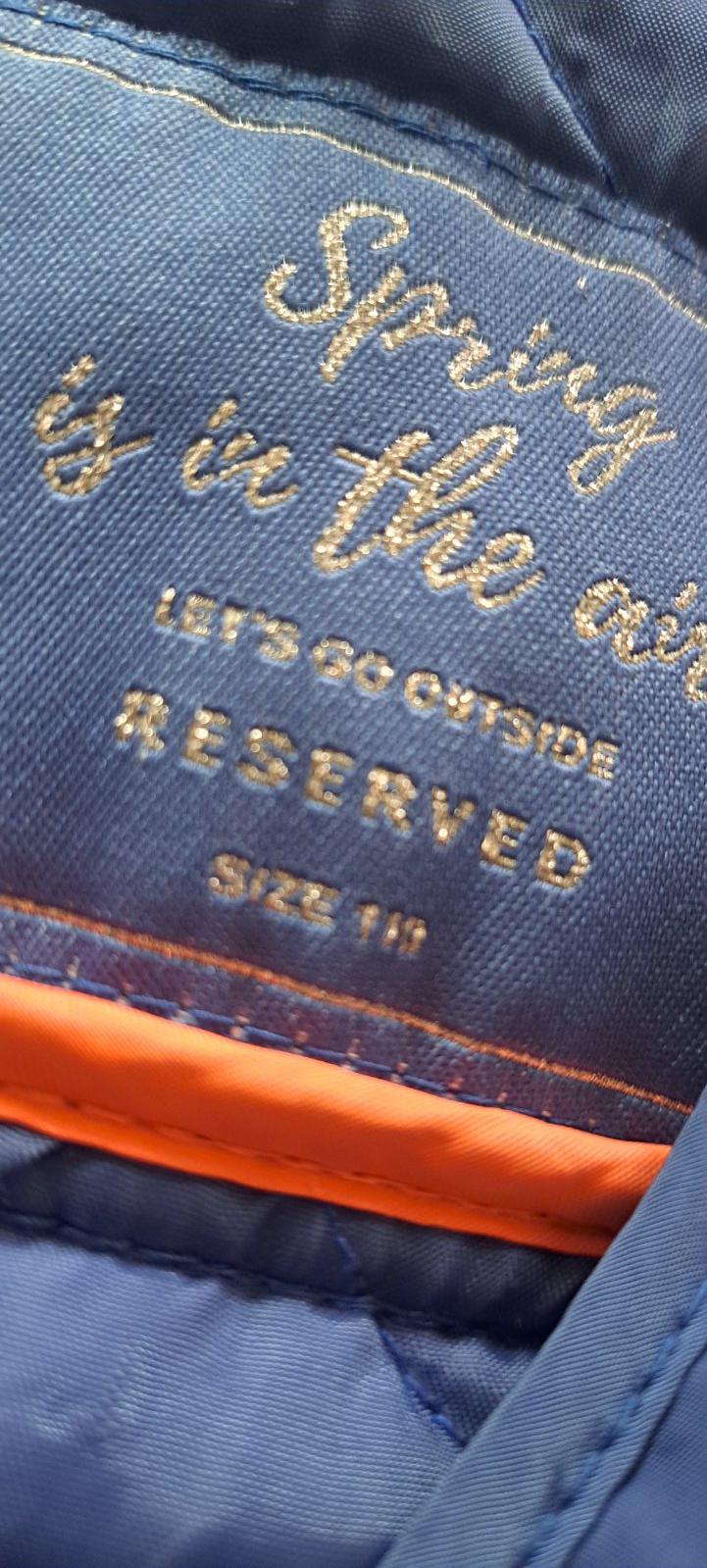 Krásna bundička značka Reserved Vysoký stojačik Zapínanie na zips Dlhé rukávy s elastickými manžetami Dve predné vrecká Elastický lem Veľkosť 116, 122, 128 Nové PC 24,99€ 2R/116,2.122,2.128