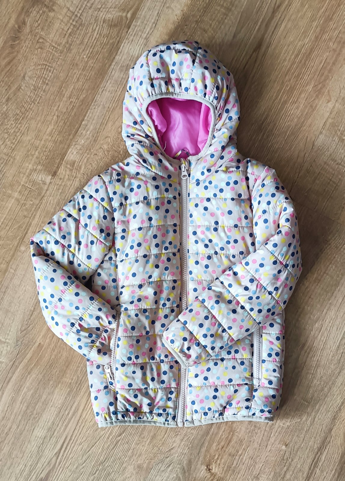 Ľahká prešívaná dievčenská bunda, veľkosť 116, s kapucňou a vreckami na zips. Nosená minimálne, super stav, bez poškodení. Na štítku vo vnútri je podpísaná menom, dá sa prelepiť.