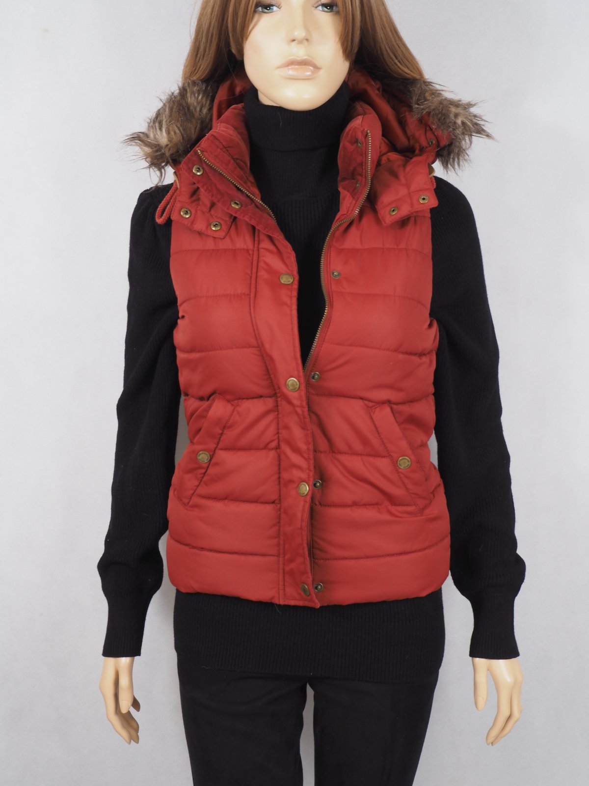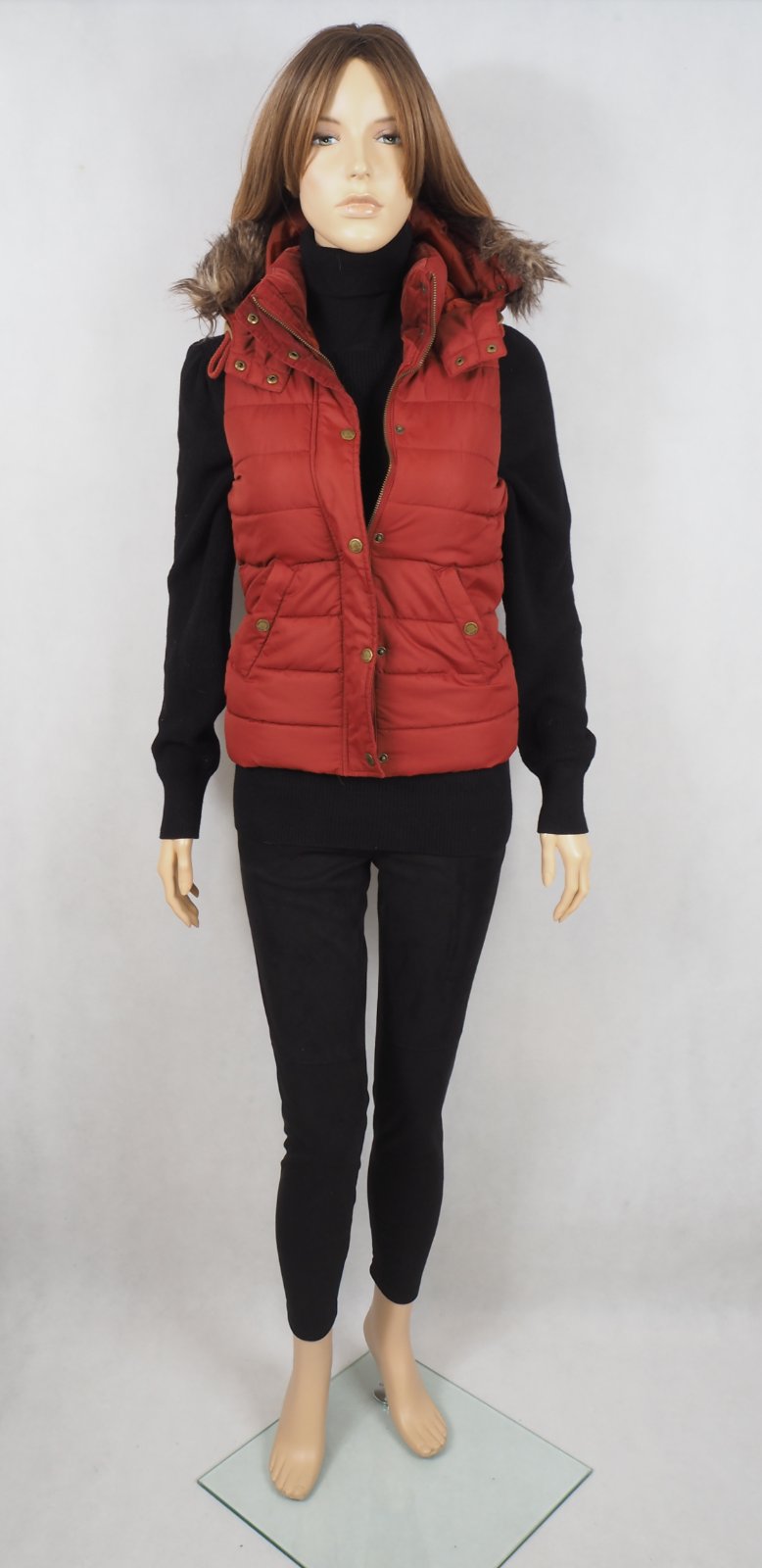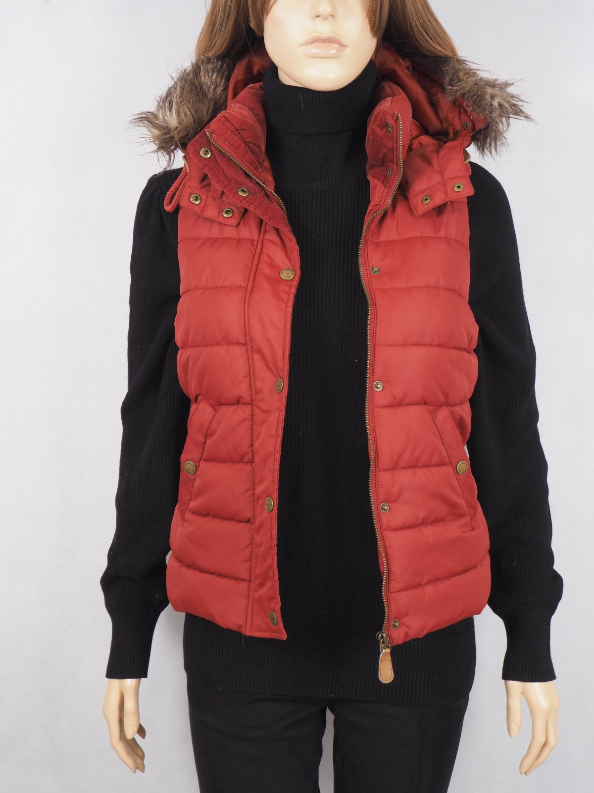 Kvalitná oteplená vesta s kapucňou, kožušinku je možné odobrať, zapínanie na zips, podšitá, super stav.