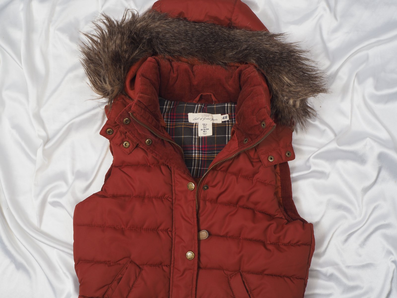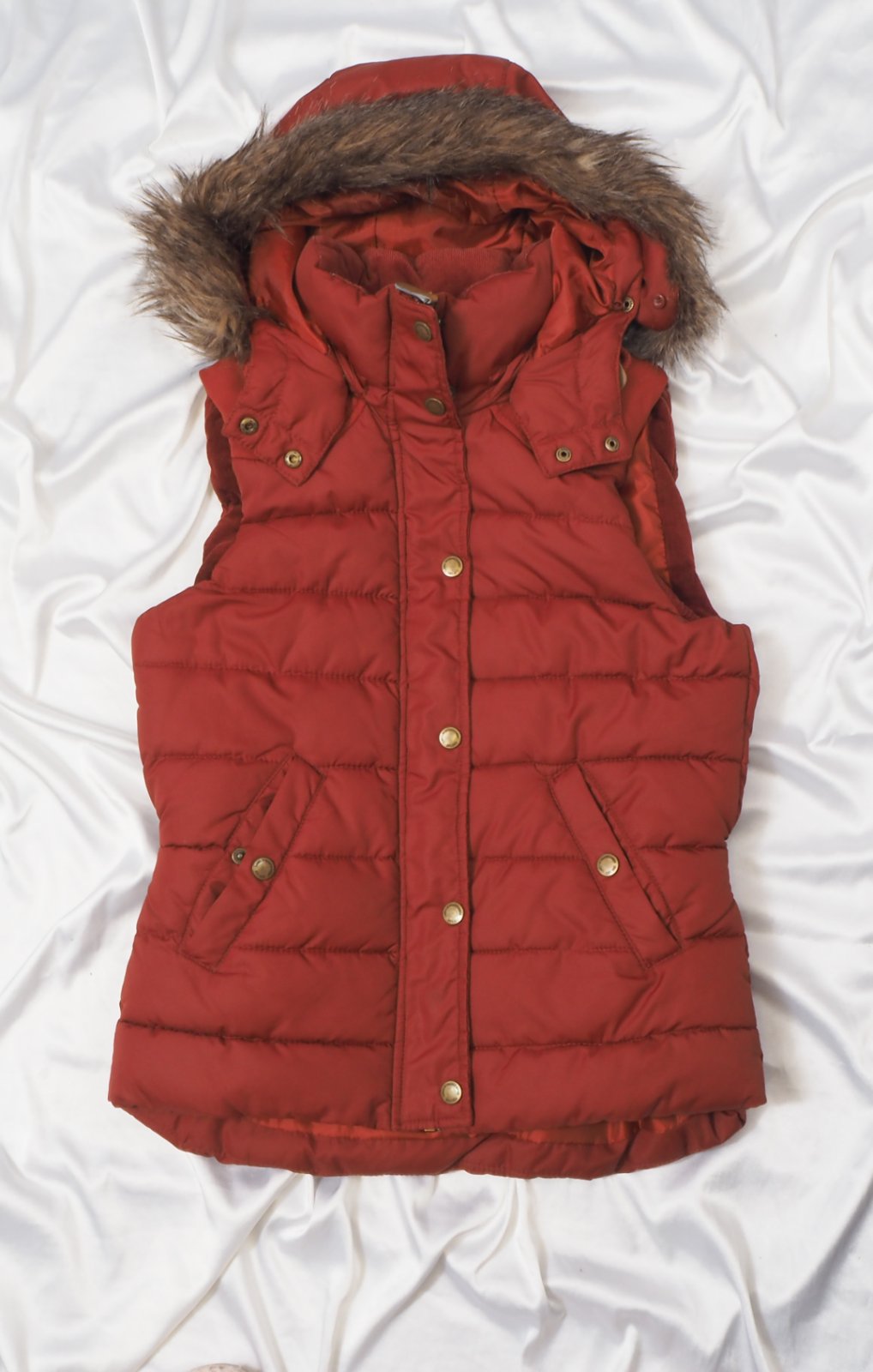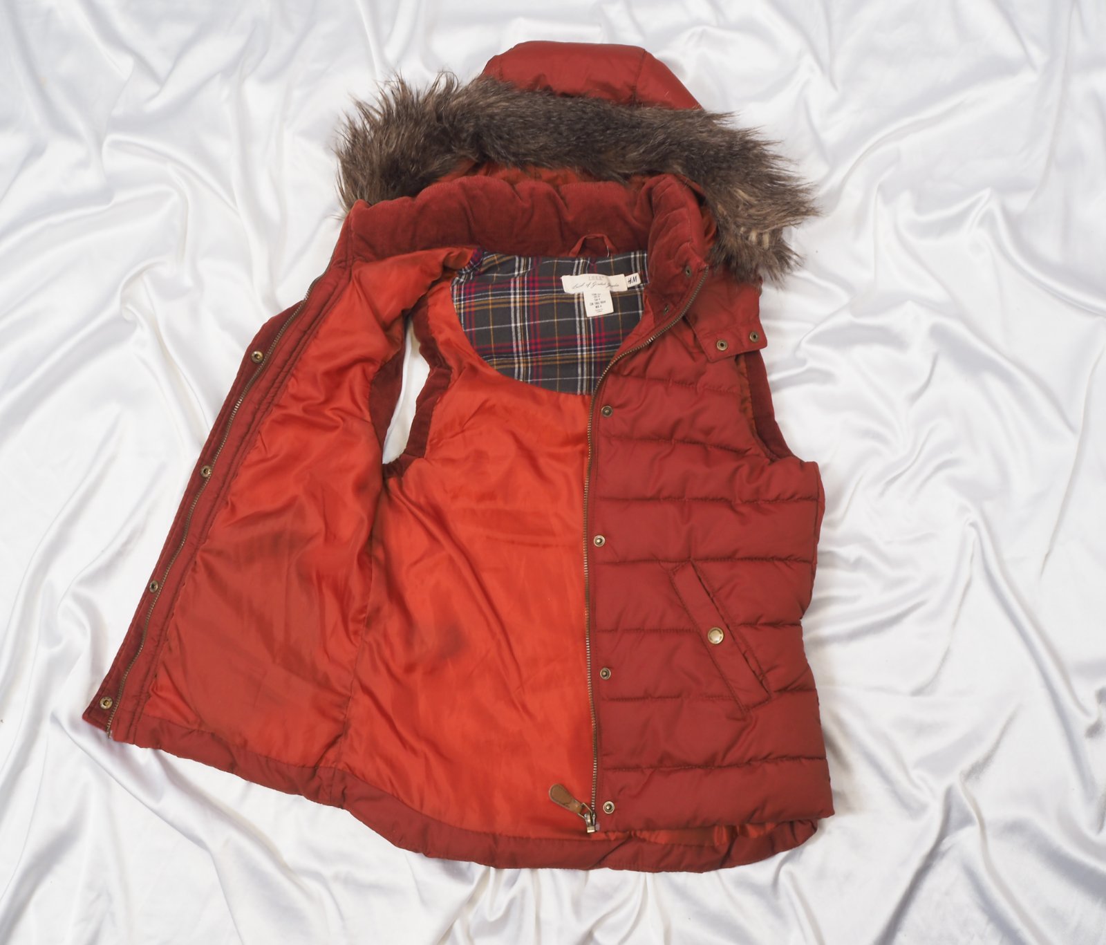 Kvalitná oteplená vesta s kapucňou, kožušinku je možné odobrať, zapínanie na zips, podšitá, super stav.