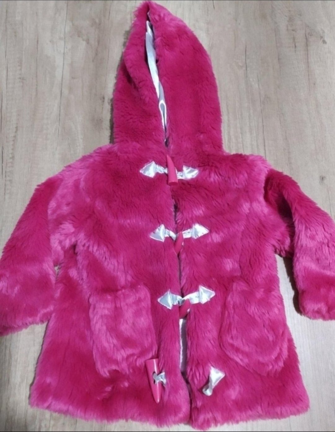 Krásny kabatik na jar/jeseň. Bohužiaľ na rukávoch je vidieť nosenie, vid fotky . Cena prispôsobená, ešte parádu urobí. Veľmi pekne pasuje na postavu, dievčatko je v ňom chutnucke. Dlzka rukáva 31cm...