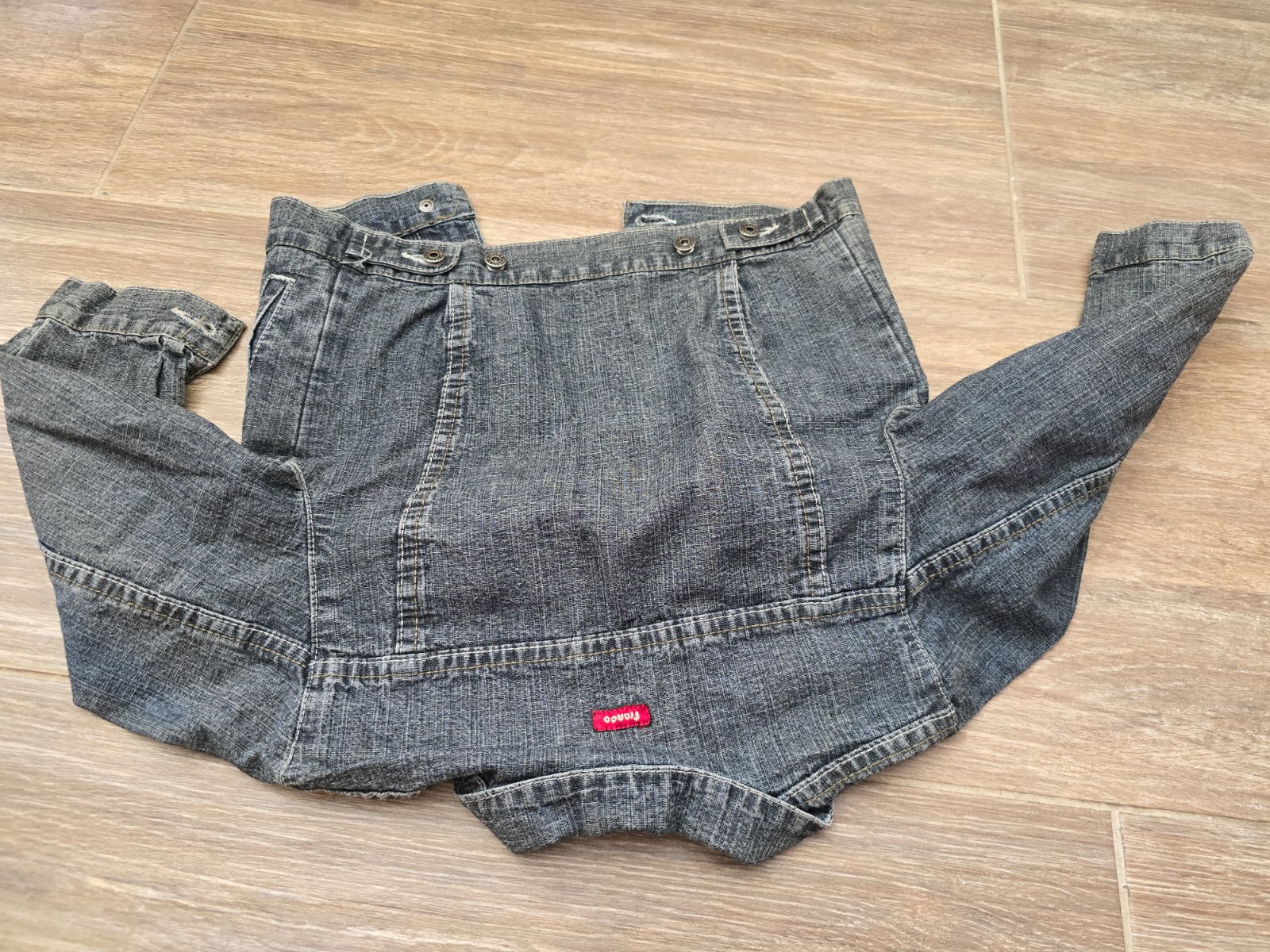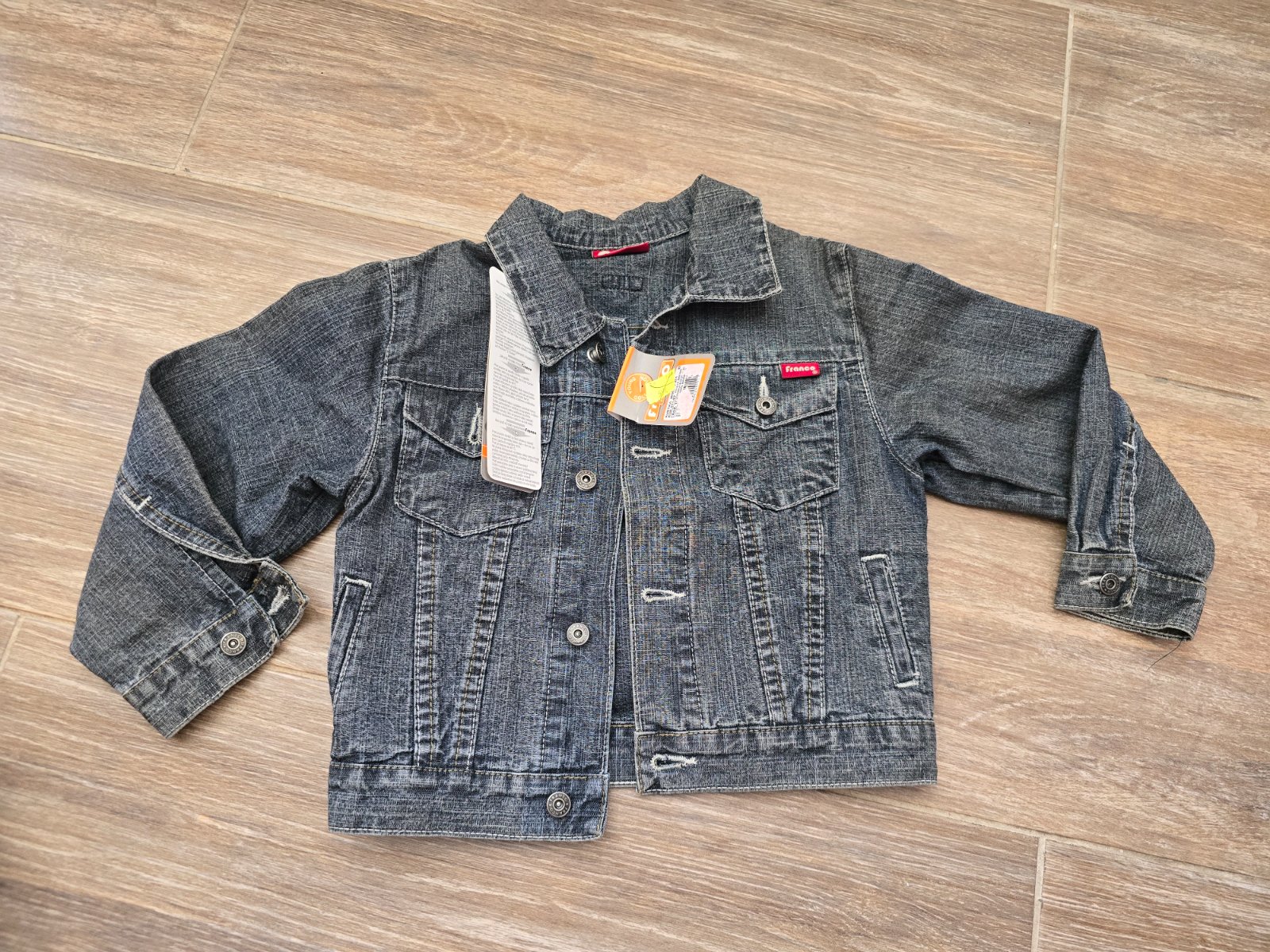 Nosená po vonku,nepoškodená,ideálna na jeseň pod vestu,farba modročierna,mám takú istú v čiernom aj vo veľkosti 86 aj s čiapkou,veľmi vďačné bundičky,nevidno hneď špinu..