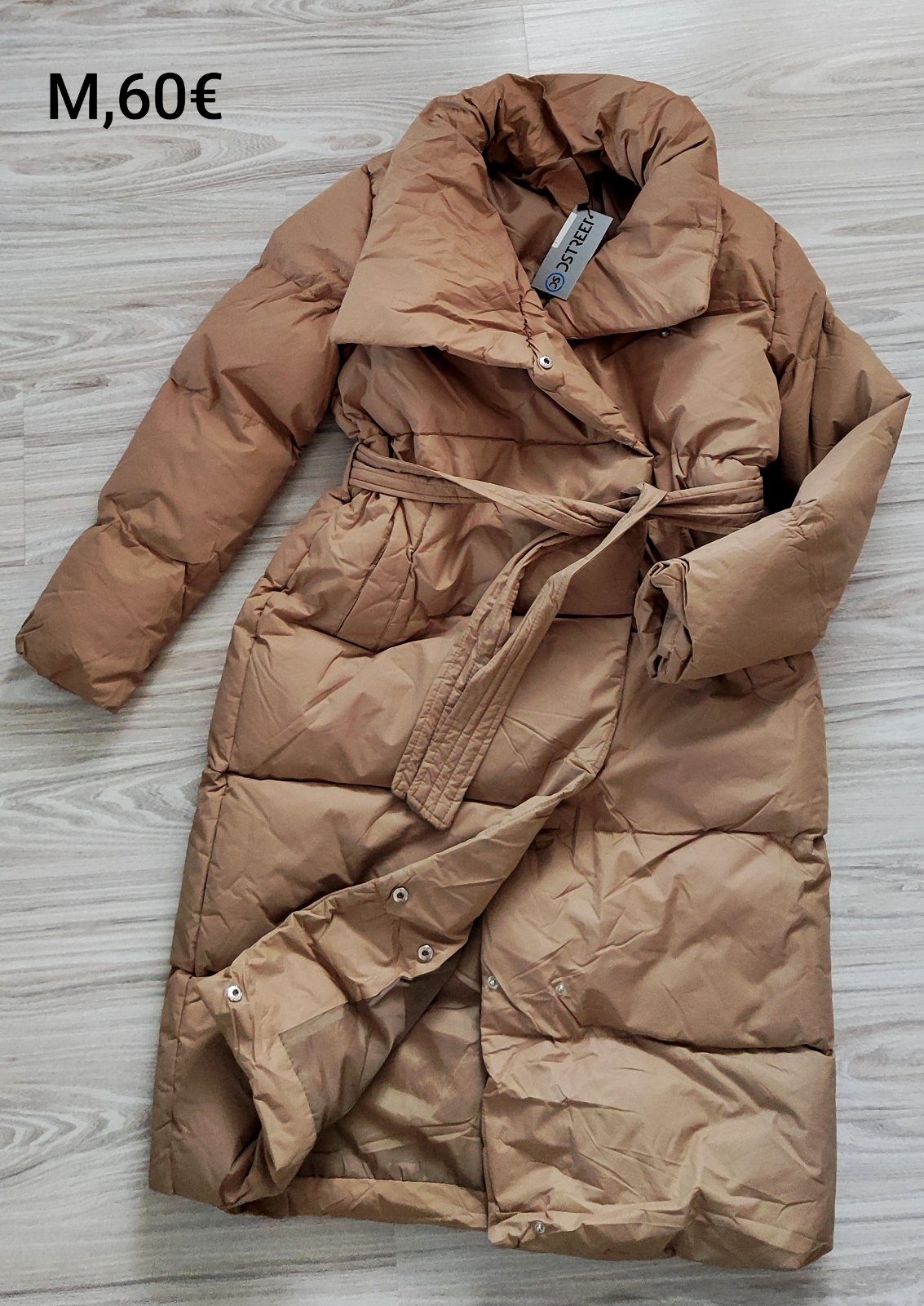 Predlzena bunda, bledohneda-kavova farba. Farba zodpoveda 3.foto. Dlzka 89 cm, rukav od krku 79 cm, pas v pokoji 2x32 cm. Malo nosena, bez podkodeni.