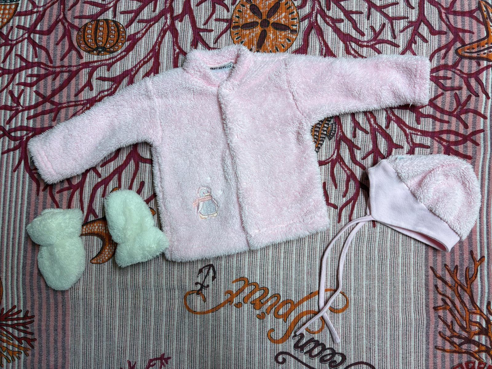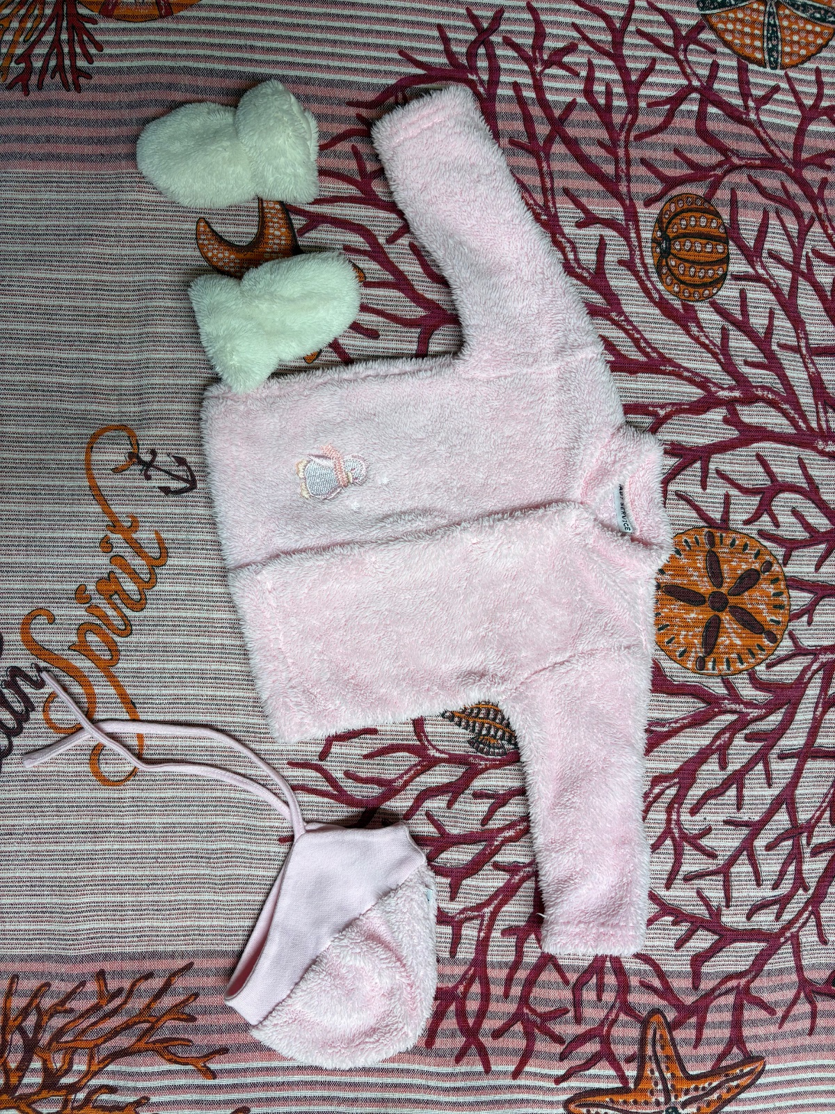Darujem za poštovne. Huňatý kabatik s čiapočkou a rukavičkami. Parkrát oblečeny.