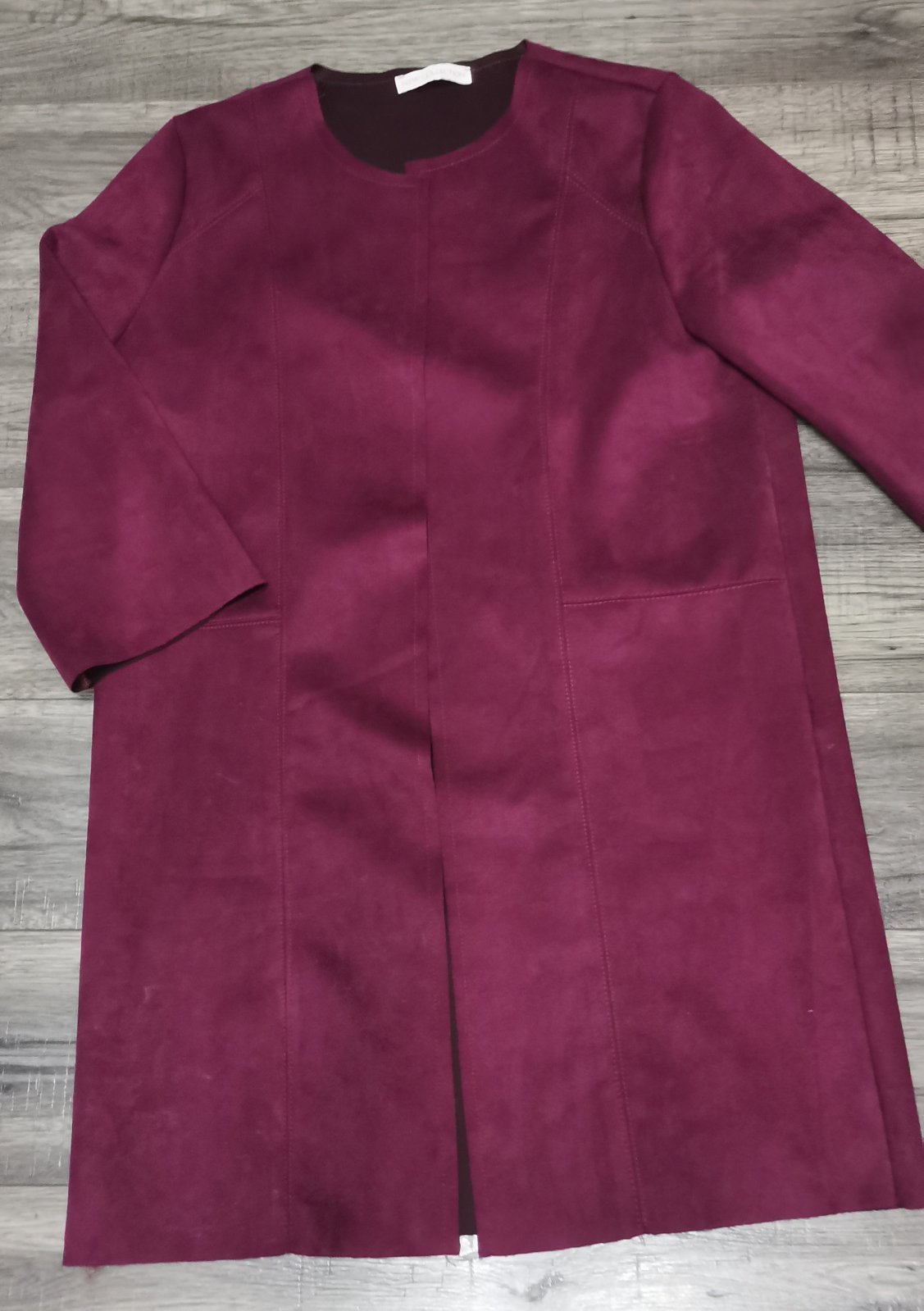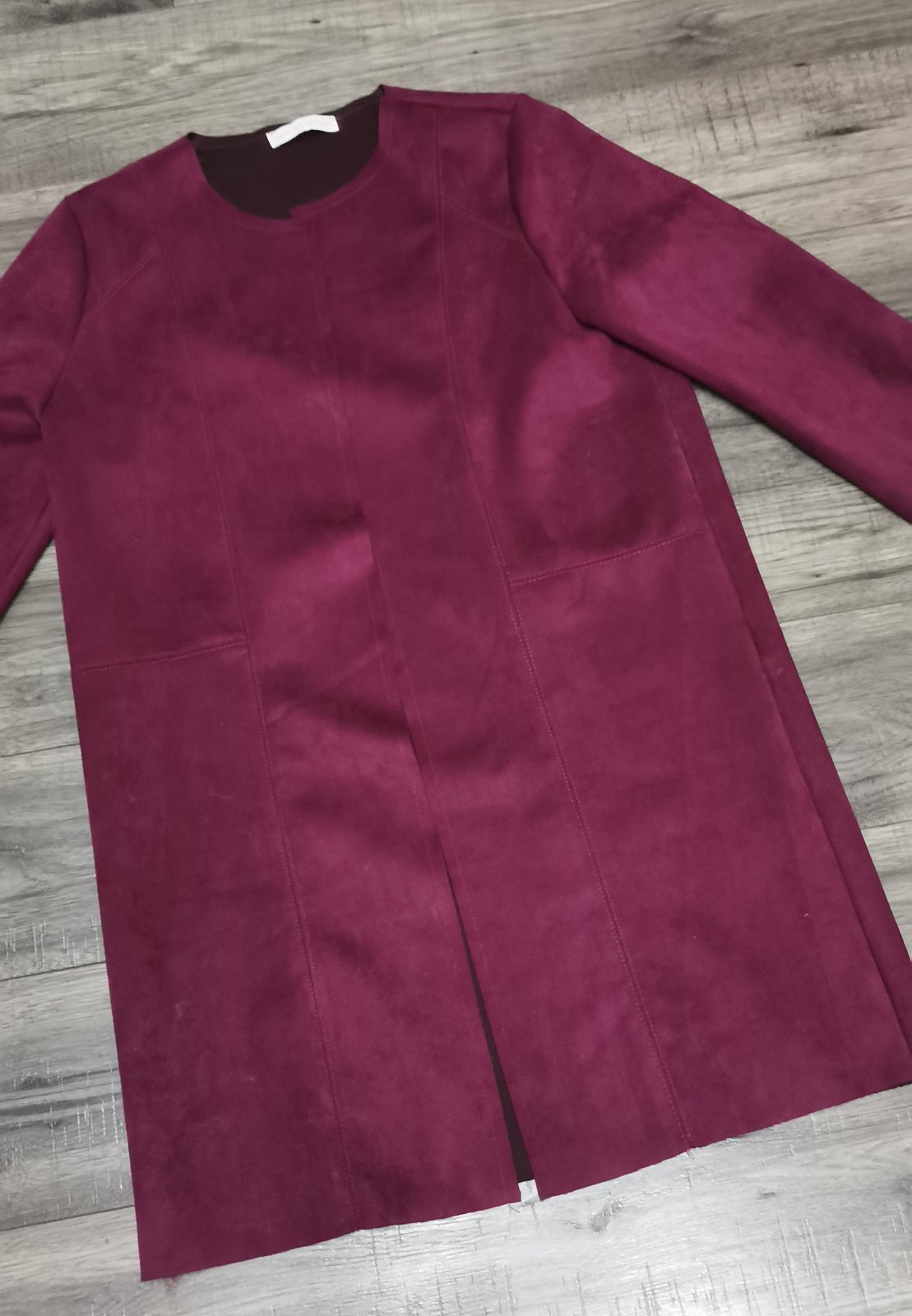 Tensi/nepodity kabat znacky VERO MODA, obleceny asi 3x, bez poskodeni. Bordova farba. Velkost M. Dlzka od ramena 91cm, sirka pod rukavmi 52cm, dlzka od goliera 73cm, zo spodu rukava 45cm.