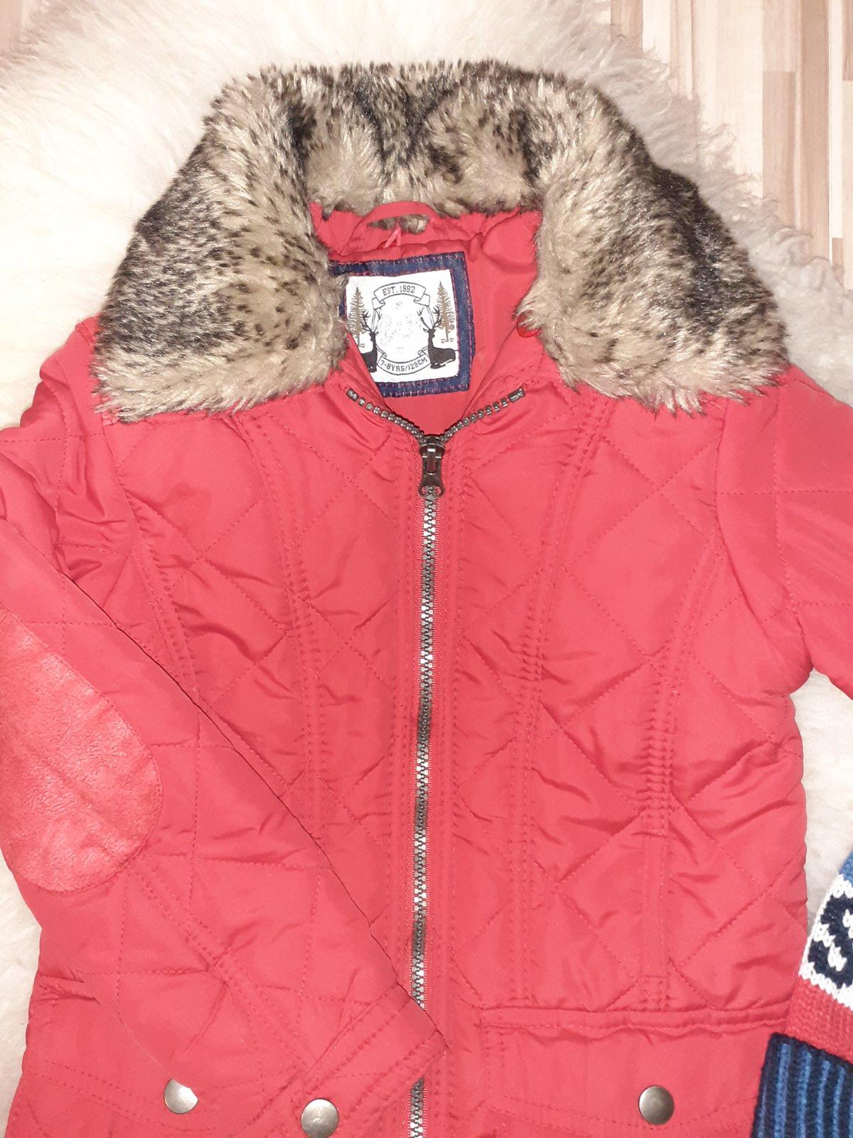 Krasna prechodna bundicka, odnimatelna kozusinka, jemne vatovana. Krasna, odporucam. Uvedena ako 128 ale podla rozmerov urcite mensia