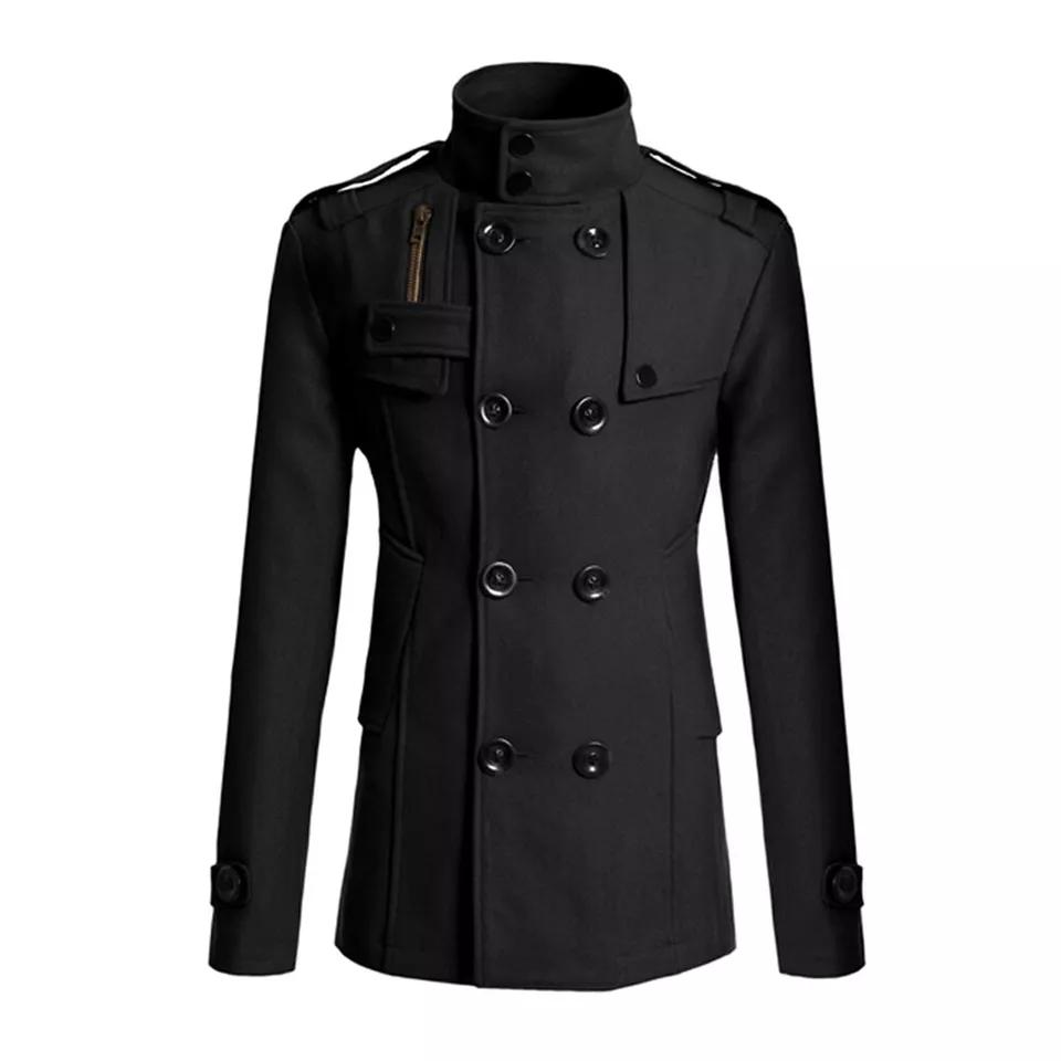 Teplý pánsky čierny kabát, podšitý. Zapína sa na gombíky a aj na zips. Má vonkajšie vrecká a jedno vnútorné. Veľkosť M.