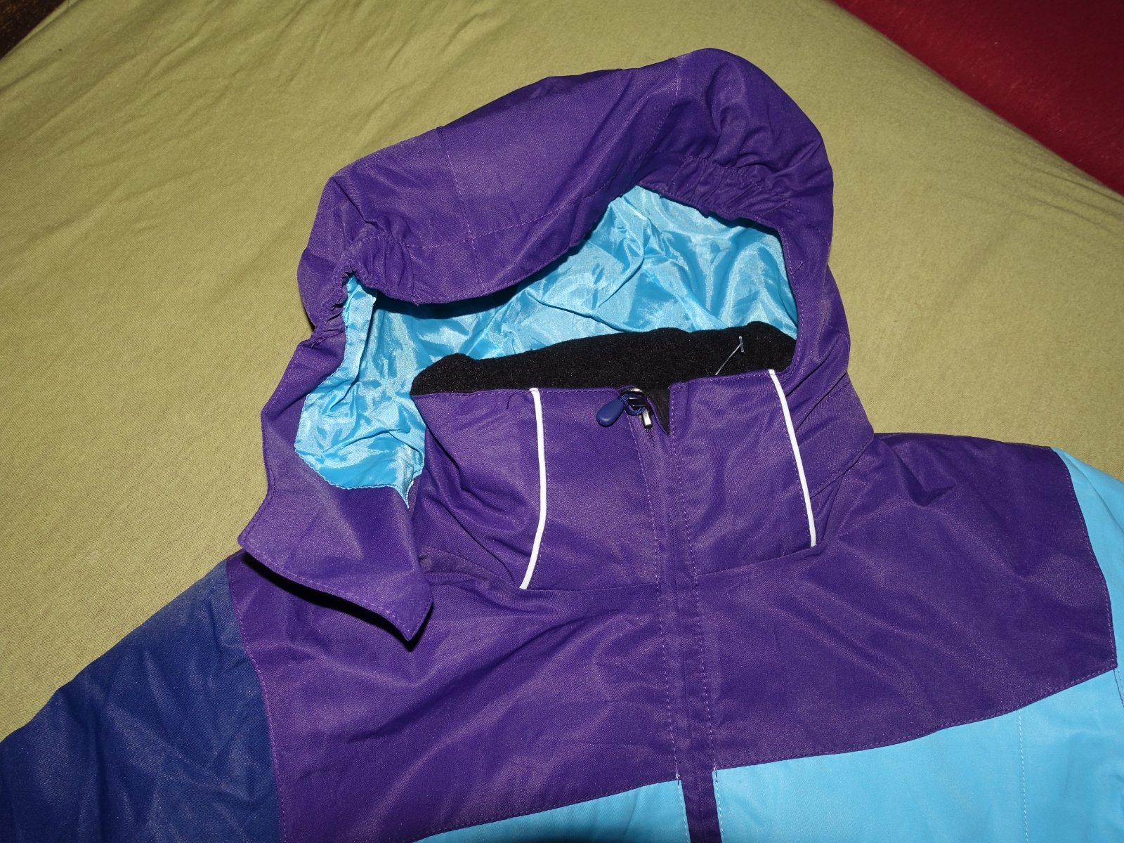 Pekna lyziarska bundicka- nova, s visackami (na chrbatiku ma fliaciky, ale urcite pojdu oprat). Kapucna sa da odopnut. Je vodeodolna, priedusna, vetruvzdorna. Velkost je uvedena ako 152, ale moze byt aj na vyssiu vysku. Je urcena pre dievca.