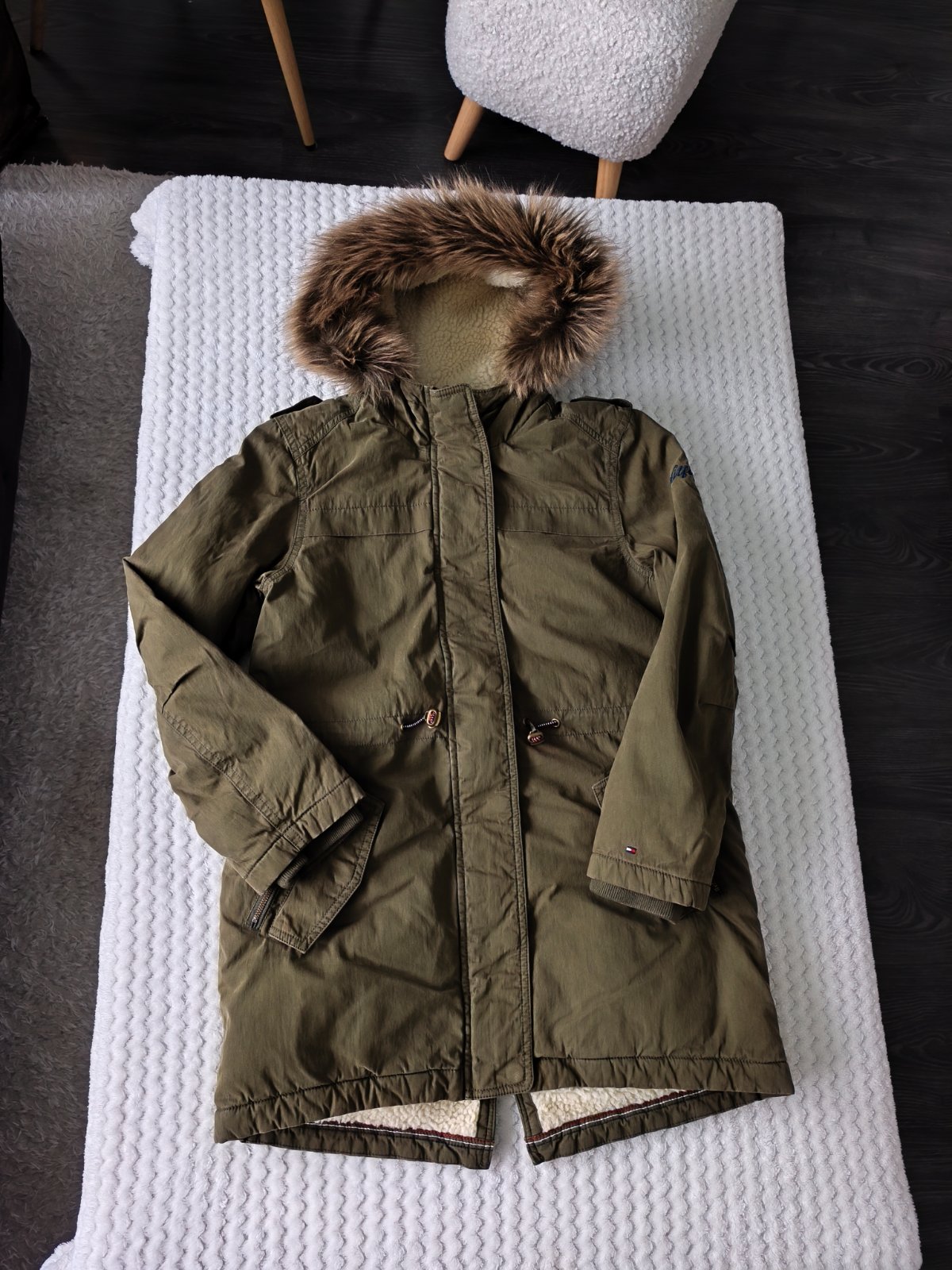 Krásna zimná bundička zn.Tommy Hilfiger , vyteplená ovčím rúnom, v páse sa dá stiahnuť, PC 92€