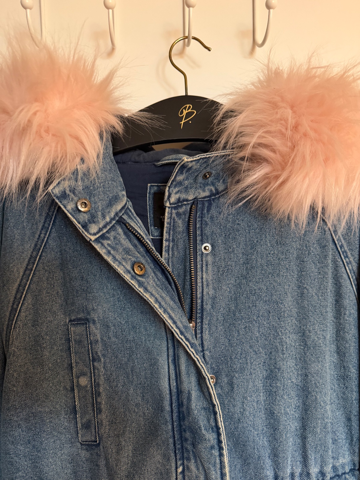Denim Parka s ruzovou kozusinou - Bershka