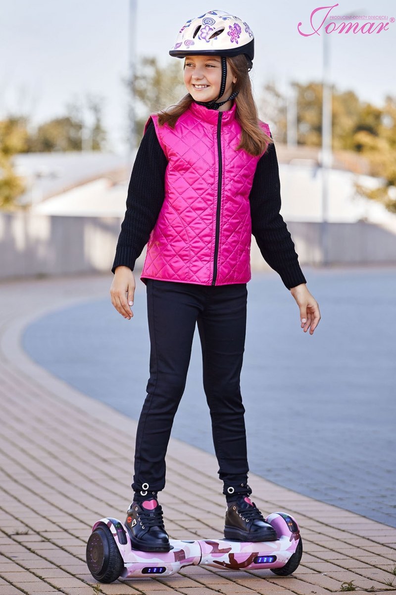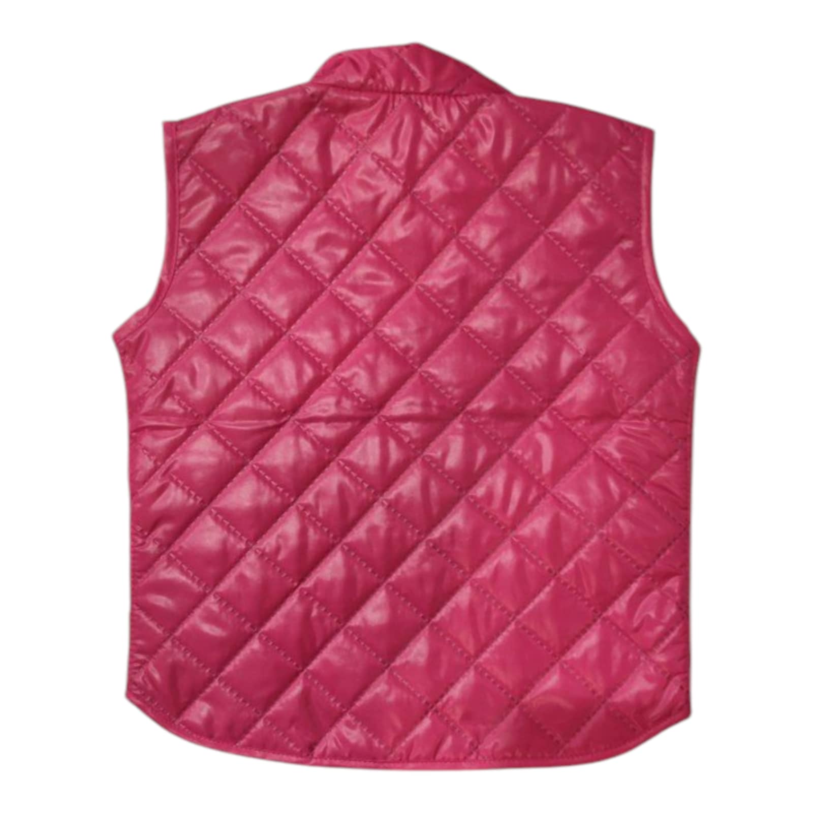 Dievčenská ľahká prešívaná vesta so zapínaním na zips. Po bokoch všité vrecka ,pekná tmavoružová farba .