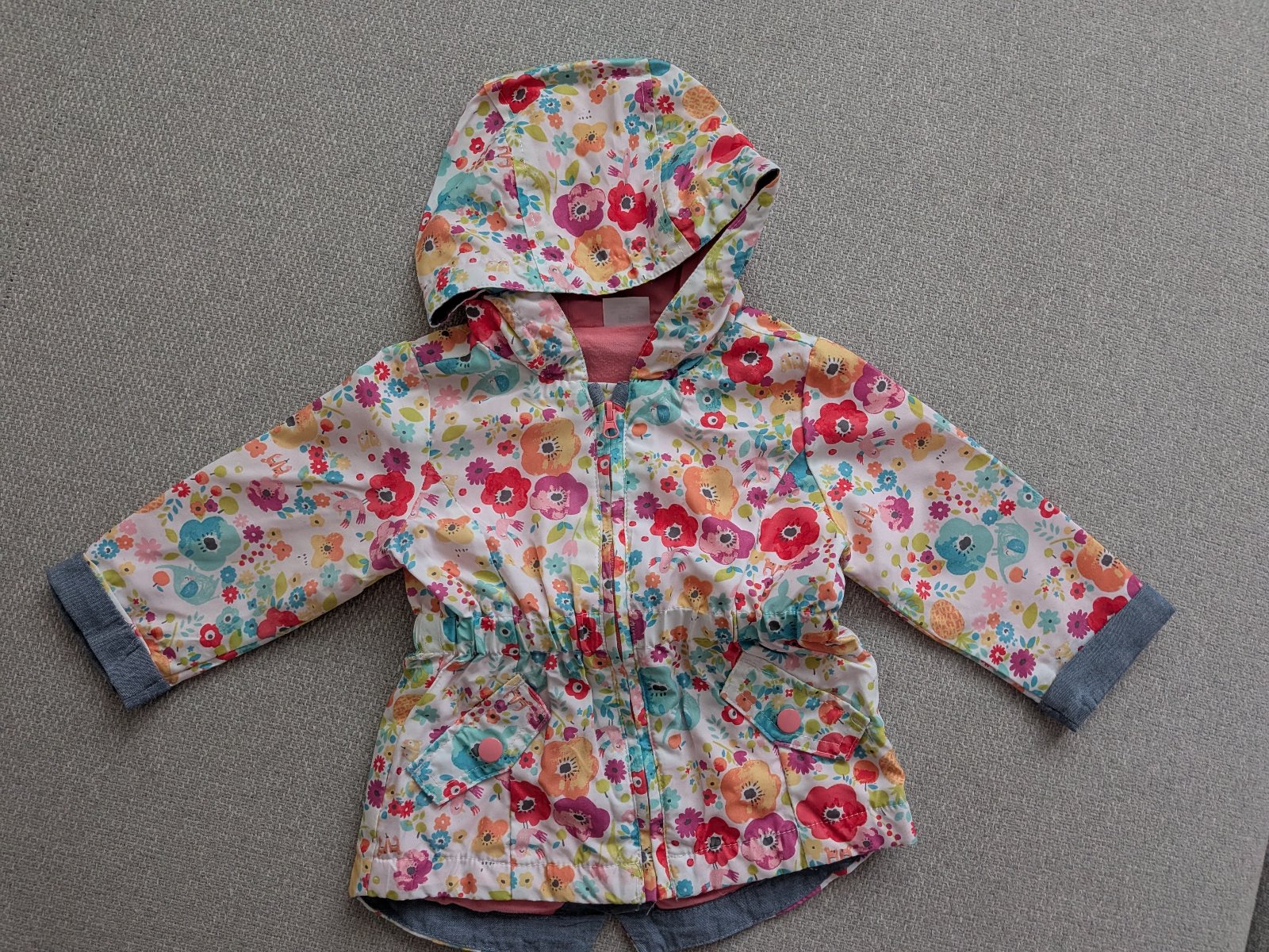 Predám krásnu tenšiu bundičku, veľkosť 6-9 mesiacov. Bundička je ako nová, oblečená pár krát. Bez fľakov.