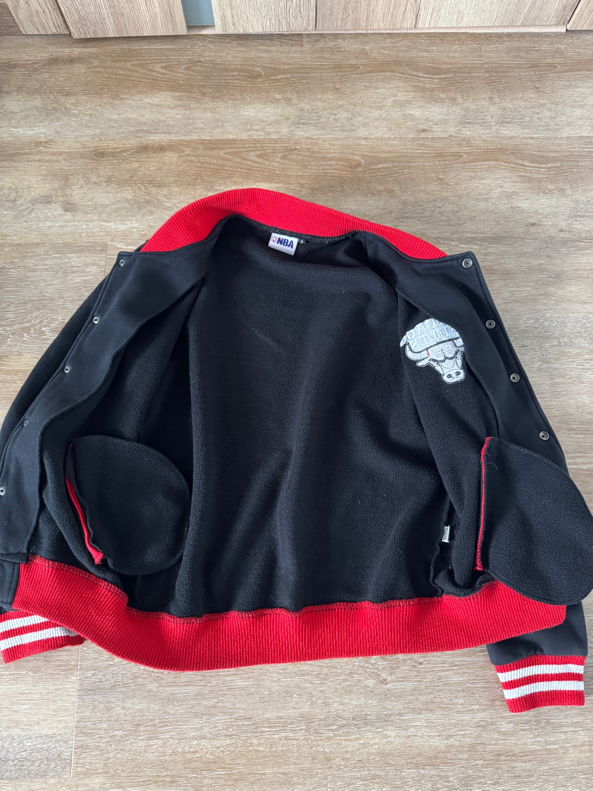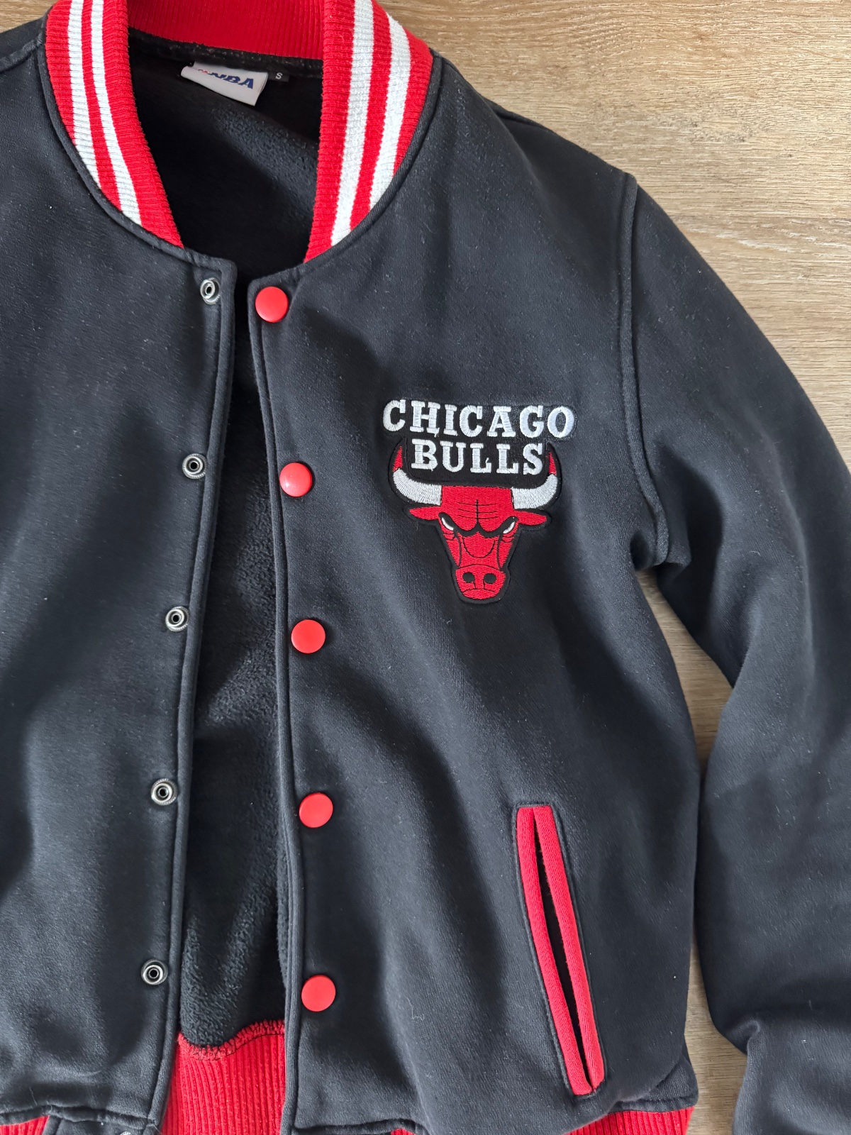 Ponúkam krásnu mikinu / bundičku / bomberu so znakom Chicago Bulls. Zapína sa na cvoky a bola nosená, no naďalej v peknom stave. Veľkostne sedí tak na XS/S ale prikladám aj rozmery. Poštovné podľa taríf.