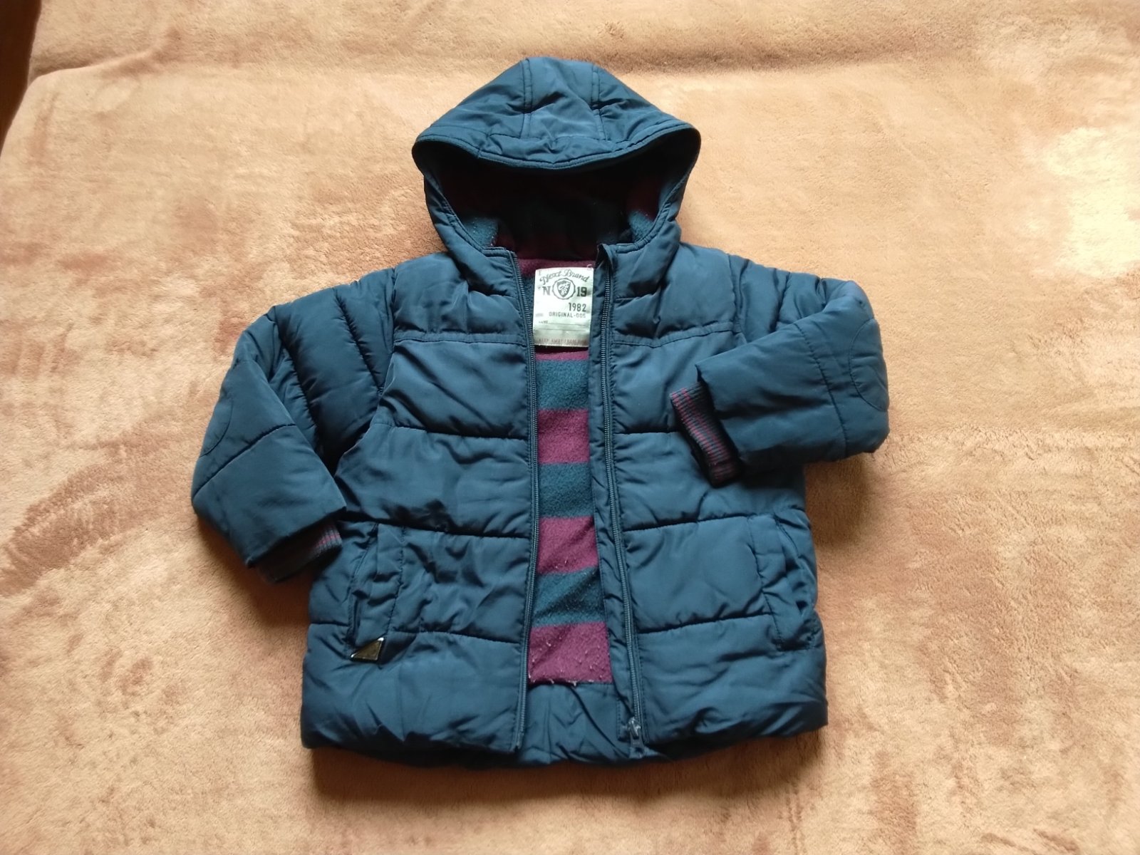 Po mojich dvoch chlapcoch.Pekny noseny stav, sem tam je na nej také ako keby zasklbnute nitky, ale pri nosení to není nejako vidieť.Je naozaj super teplucka.Vnutro flis, je hrubšia. + Pošta