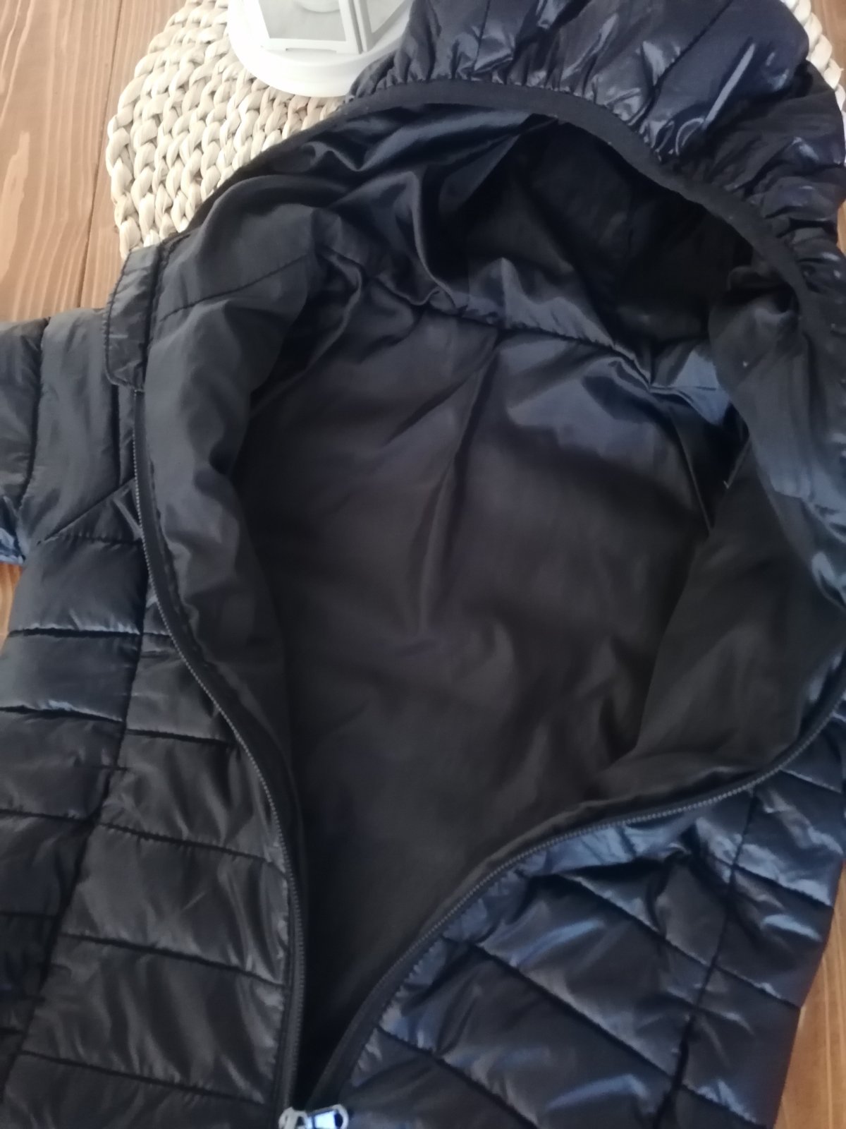 Prechodná bundička. Moderná,dobre sedí. Pri vrecku rozparaná. Šikovná žienka opraví.