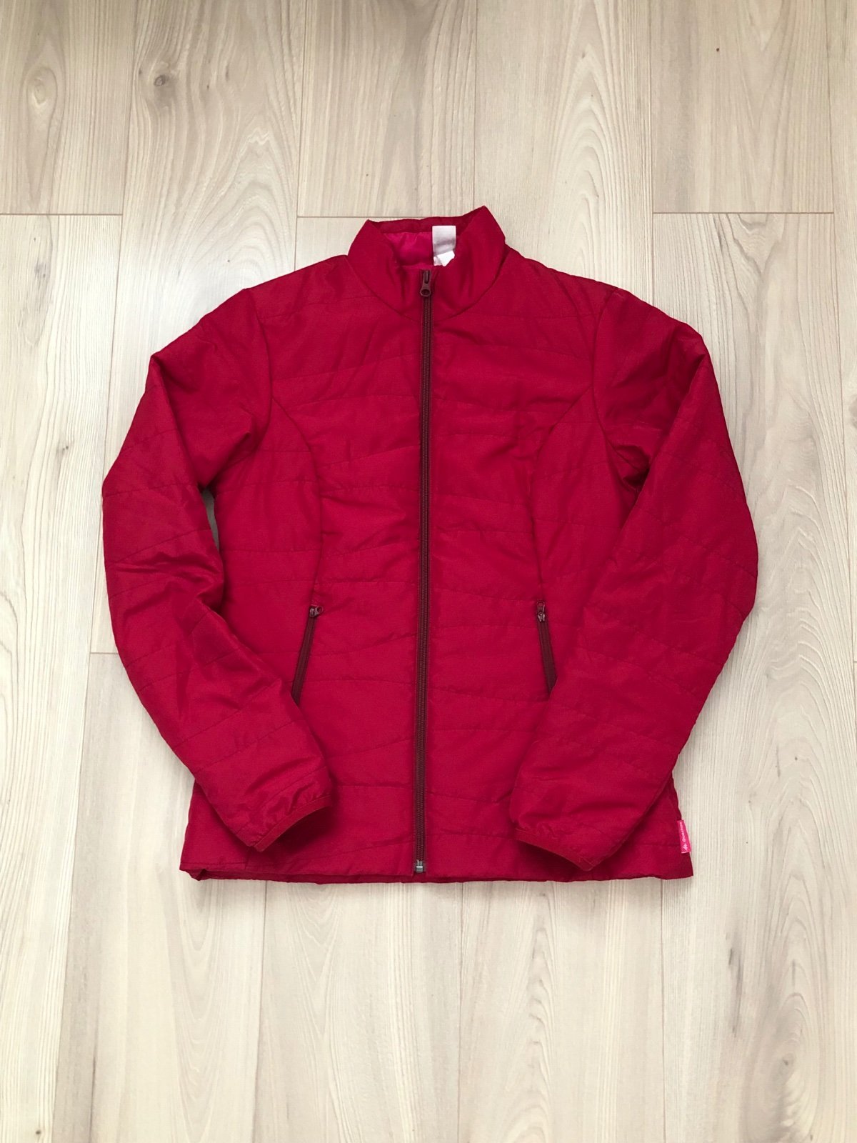 Ľahká bundička, farba malinovo-červená. Veľkost S ale sadne aj na M, dlhsi strih. Len parkrat oblecena, top stav.