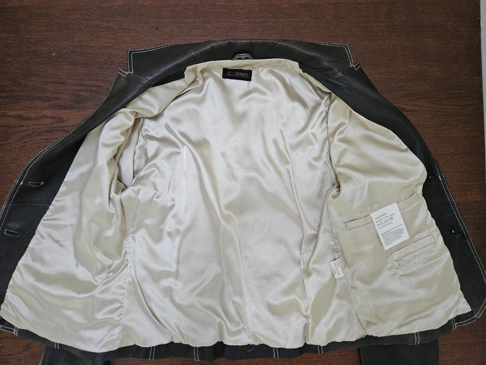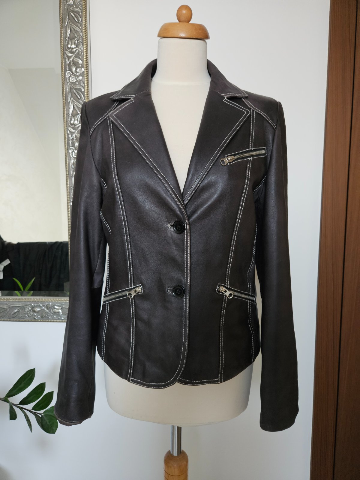 Tmavohnedé prešívané sako Cabrini vo veľkosti 38. 100% koža, ktorá je mäkká a príjemná na dotyk. Nádherne sedí, krajšie ako na foto. Veľkosť zodpovedá. Výborný stav. Žiaľ, potrebujem väčšiu veľkosť.