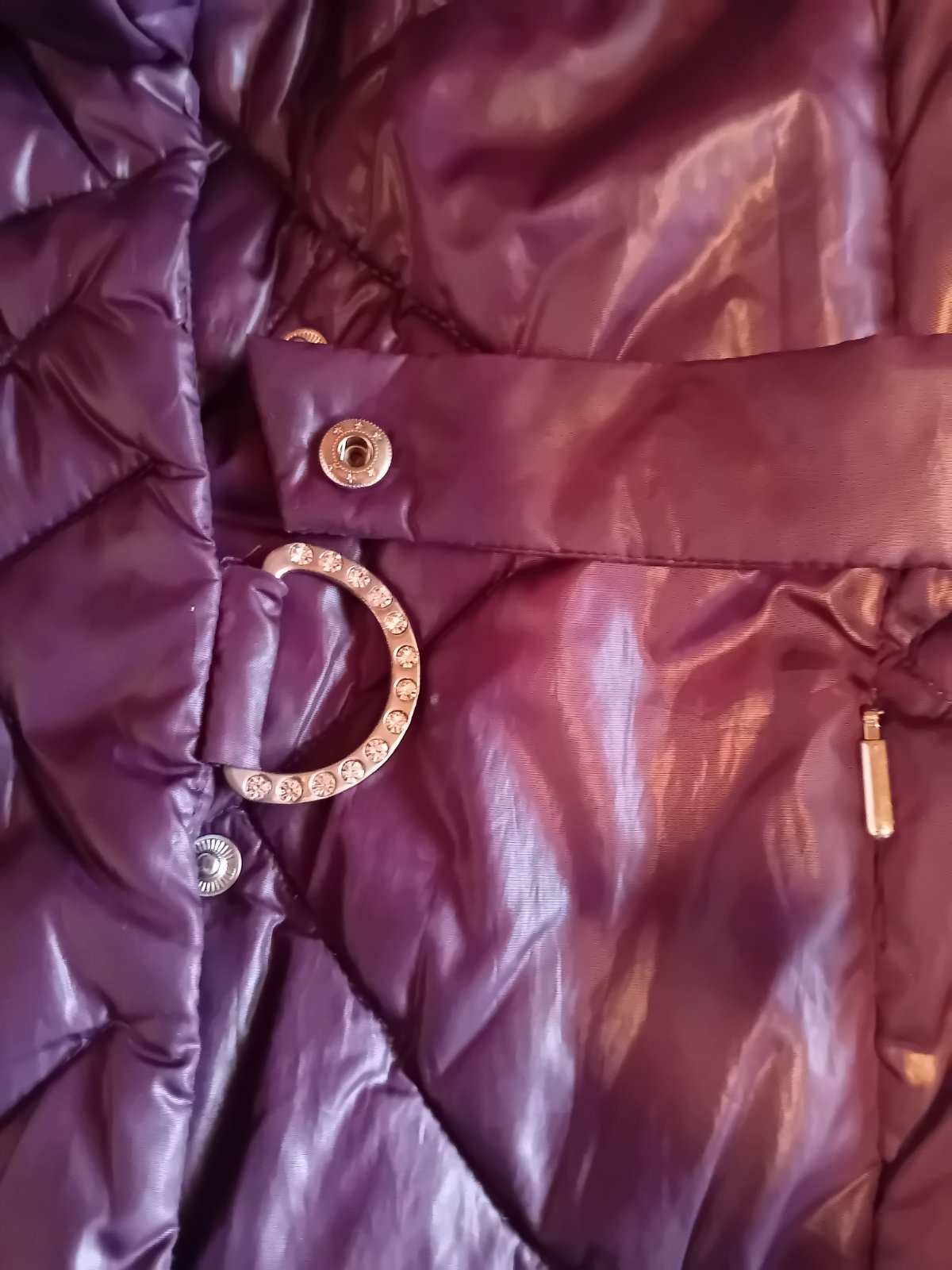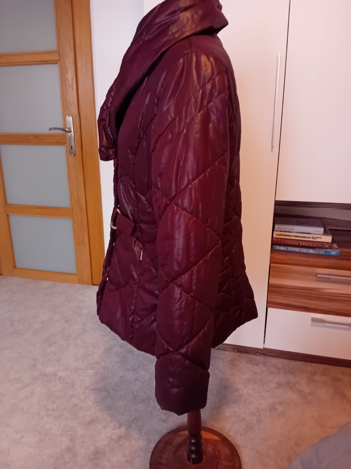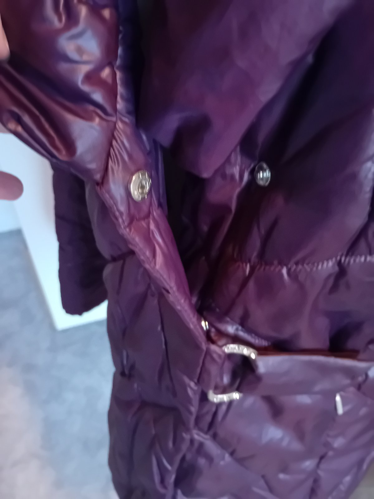 Málo nosená, veĺmi dobrý stav, z vnútra nafotené natrhnutie podšívka. Viem to opraviť. Miery - hrudník 2x50 cm, dĺžka 70 cm. Farba tmavo fialová - bordová.