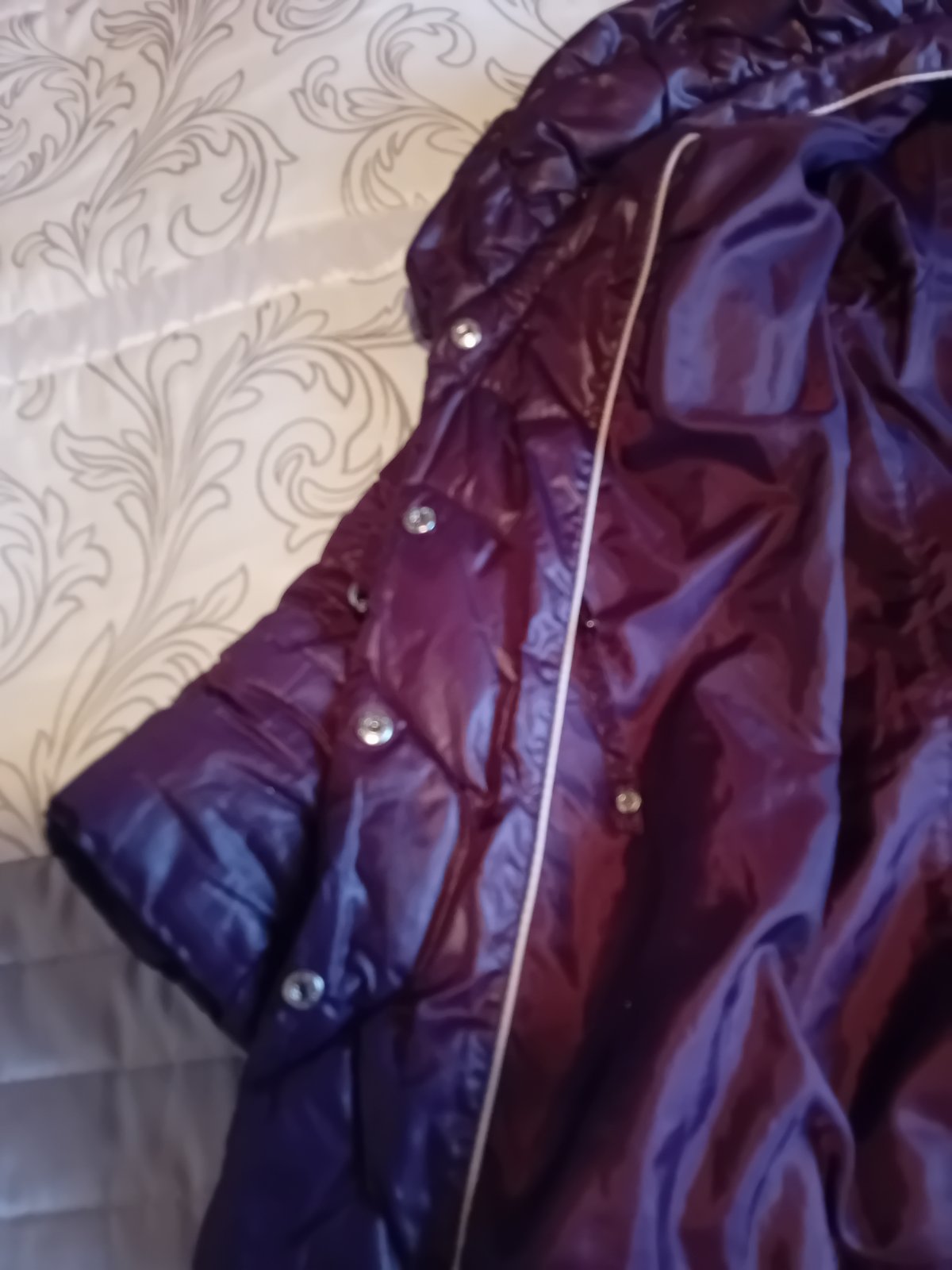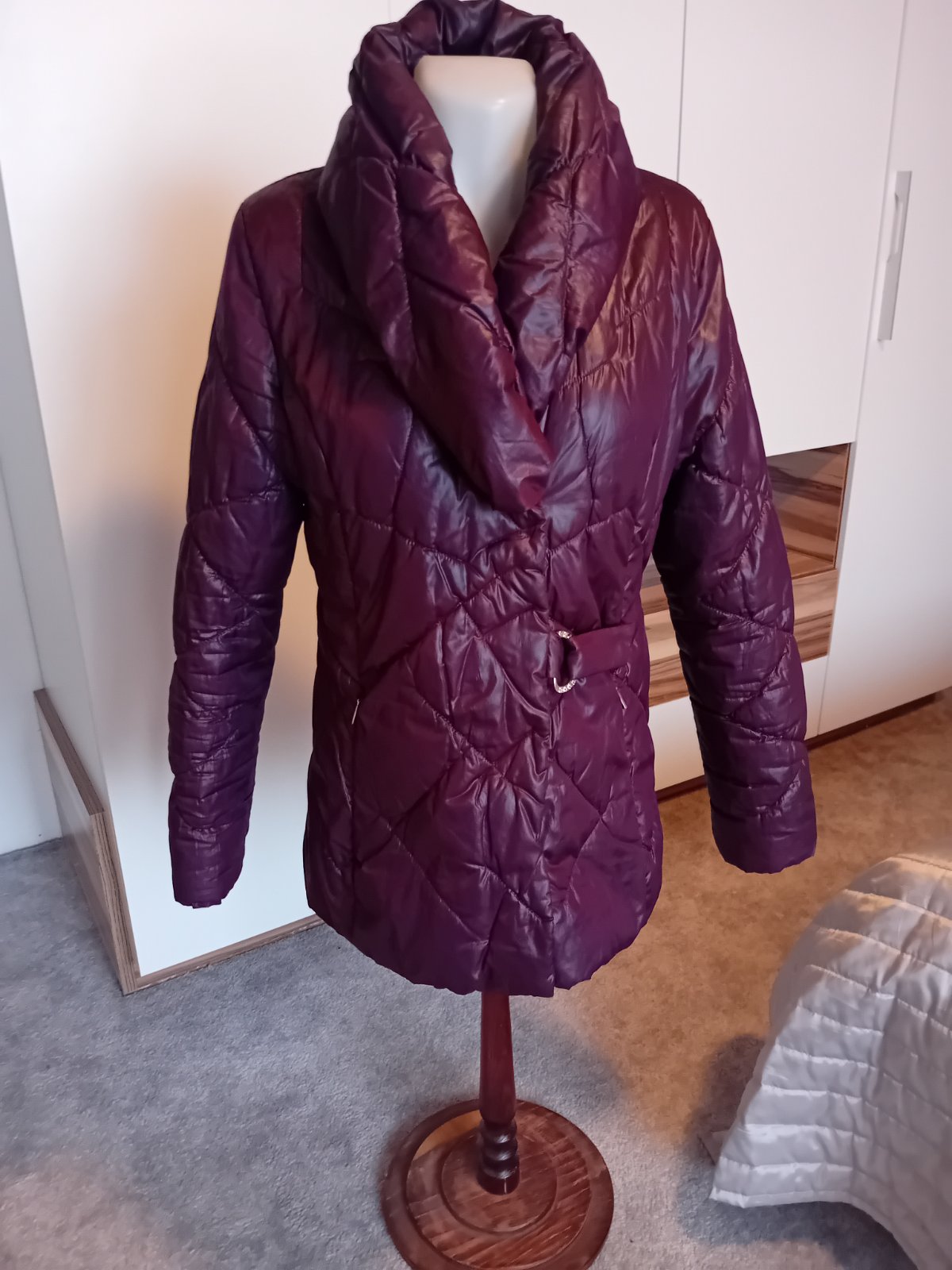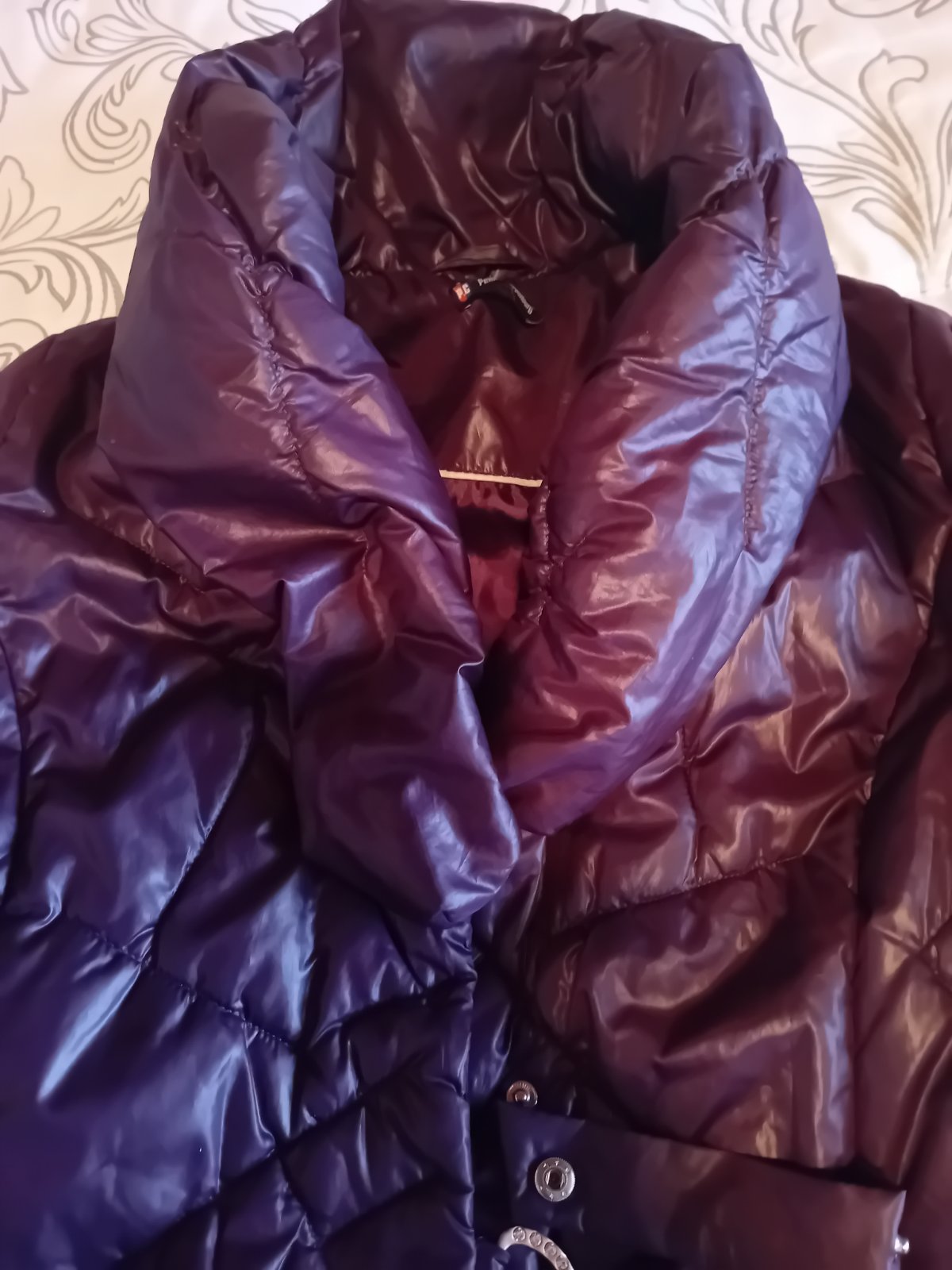 Málo nosená, veĺmi dobrý stav, z vnútra nafotené natrhnutie podšívka. Viem to opraviť. Miery - hrudník 2x50 cm, dĺžka 70 cm. Farba tmavo fialová - bordová.