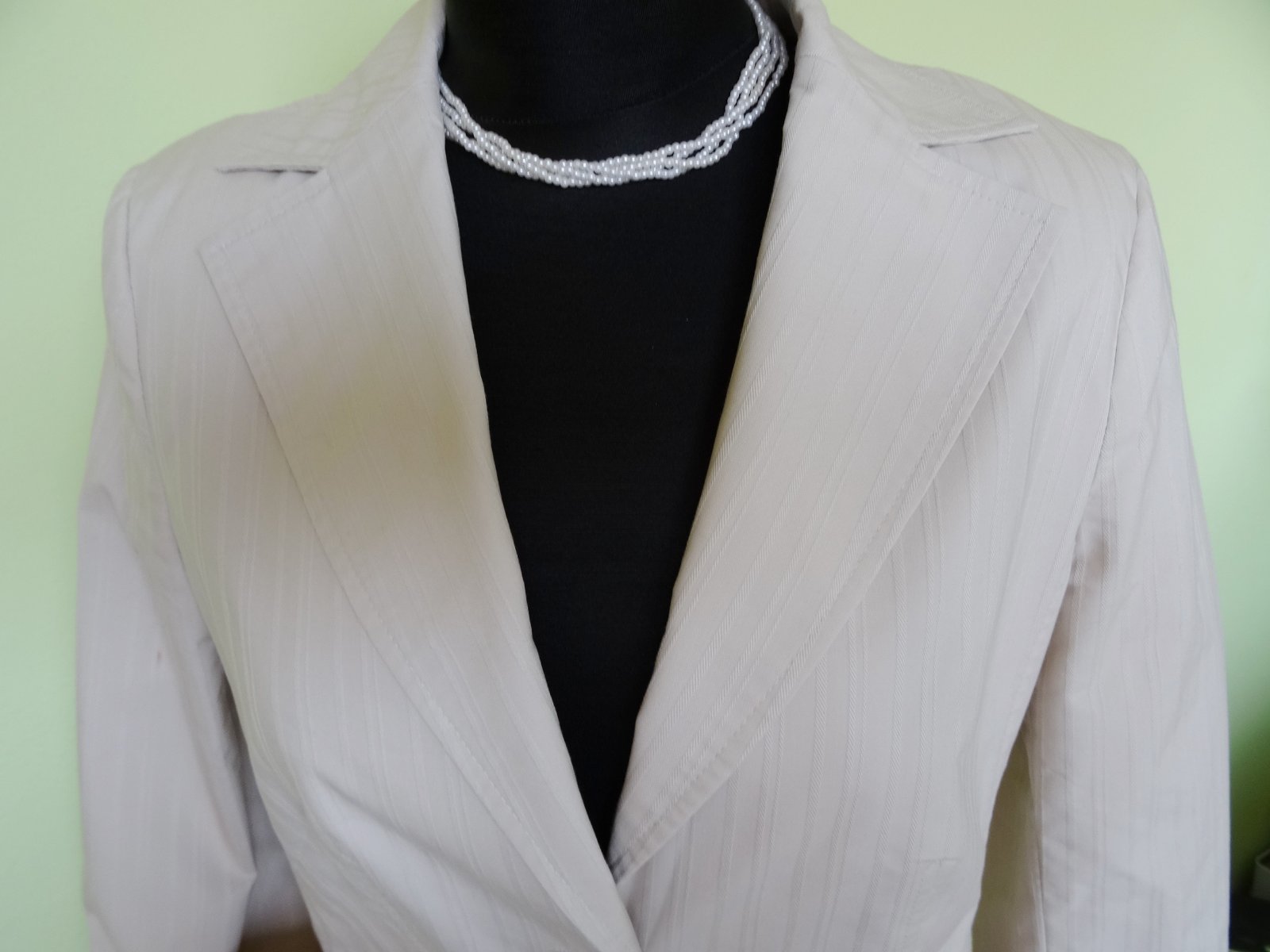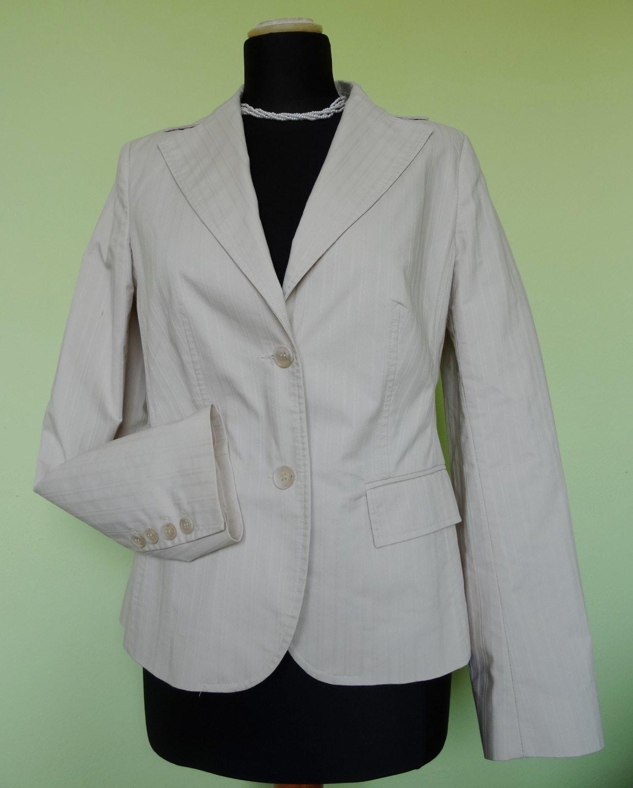 Dámske sako KappAhl, veľ.38, rozmery: dlžka 59cm, pod pazuchami 2x45cm, rukáv od pleca 61 a od pazuchy 44cm.