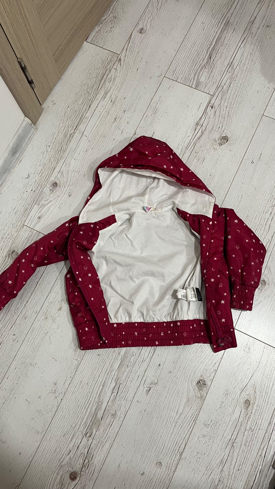 Krásna prechodná bunda, pre otužilejšie detičky vhodná aj na teplejšiu zimu. Výplň je primaloft. Má iba jednu chybičku, zašitú dierku na rukáve, ale vidno to iba veľmi zblízka. Veľkosť je 104, ale ...