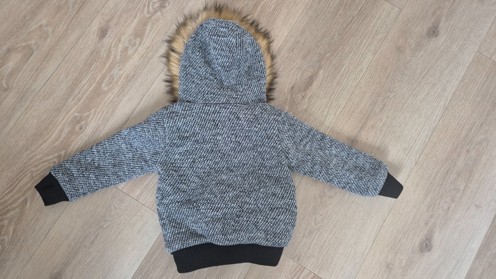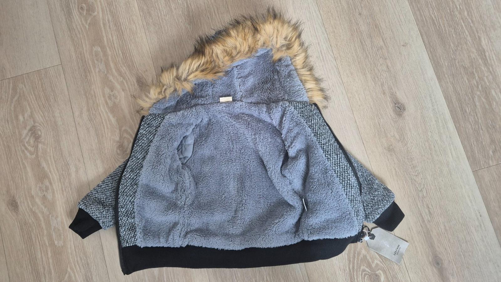 Prechodná bunda trochu nižšie pása ale závisí od postavy, veľmi teplá je to kombinácia vlny ale keďže je podšitá neškriabe, rukávy a spodok ukončené patentom, veľká odnímateľná kapucňa, stav veľmi ...