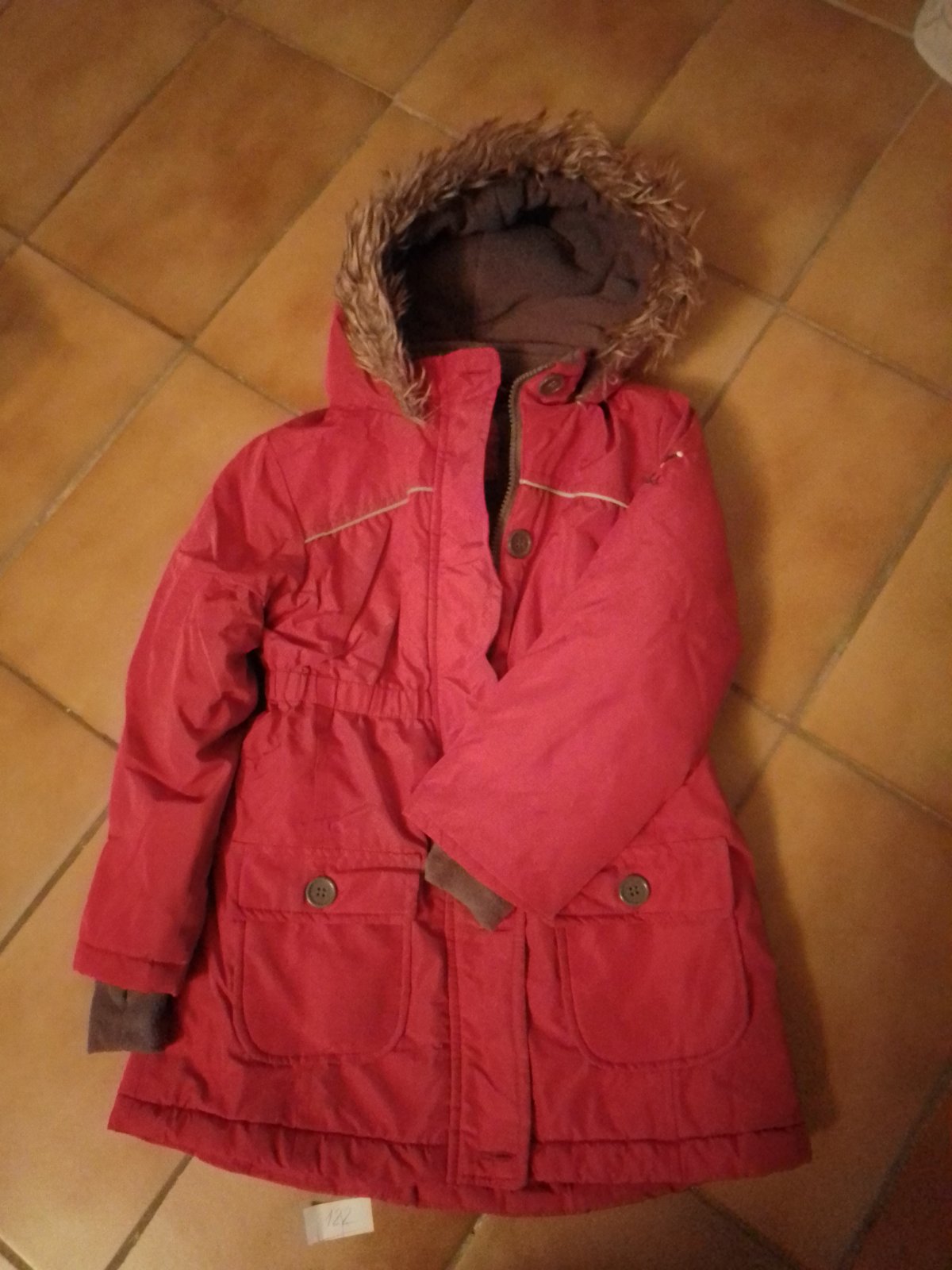 Zimná bunda s kapucňou a rukavičkami, veľkosť 122, bez poškodení.