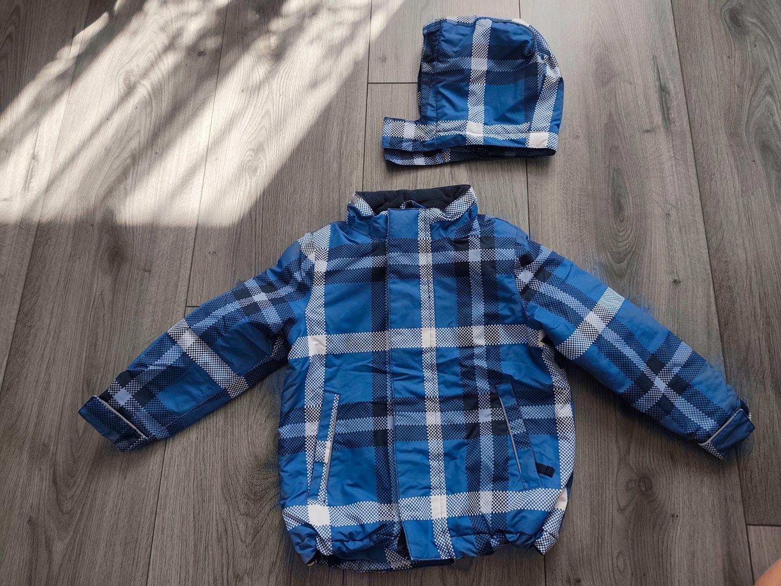 Prechodná bunda veľkosť 98-104. Bez poškodení, minimálne nosená. Kapucňa sa dá odopinat na zips, dole sa dá bunda utiahnuť gumičkami. Cena+ poštovné.