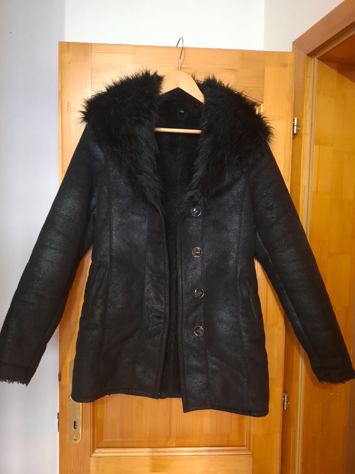 Čierny kabát s ovčím rúnom