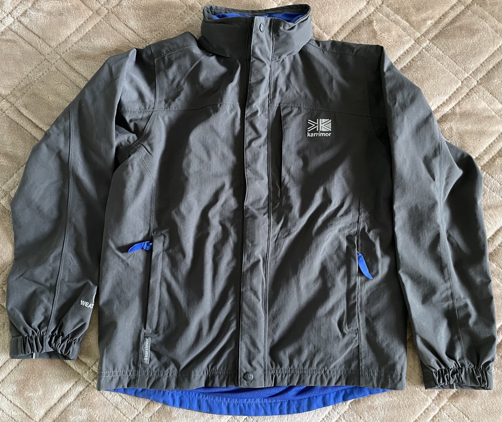 Detská prechodná bunda značky Karrimor. Nenosená! Veľkosť 146-152, na 11-12 rokov. So skrytou kapucňou. Vačky na zips. Aj vnútorný tajný vačok na zips. Podšívka modrá, bunda tmanošedá. Dĺžka 60 cm, šírka v podpazuší 2x 49 cm, dĺžka rukáva od podpazušia 50 cm, od ramena 55cm.
