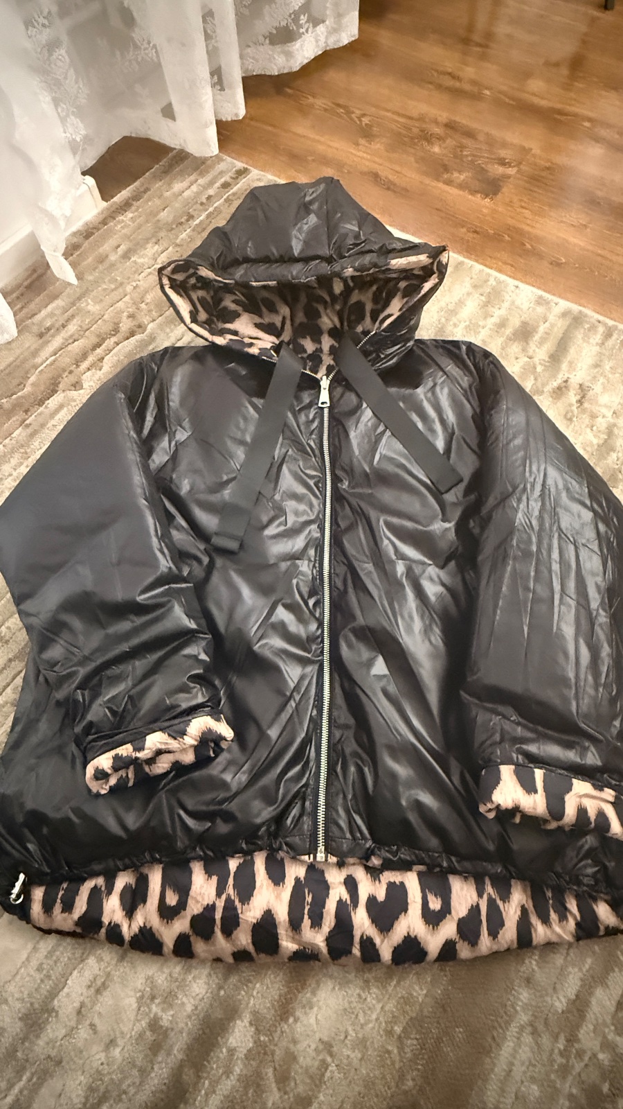 Bundicka je v top stave, ako nova par x oblecena. Je obojstranna, ma mierne predlzeny chrbat. Oversize strih. Moznost stiahnutia bundy na spodku…