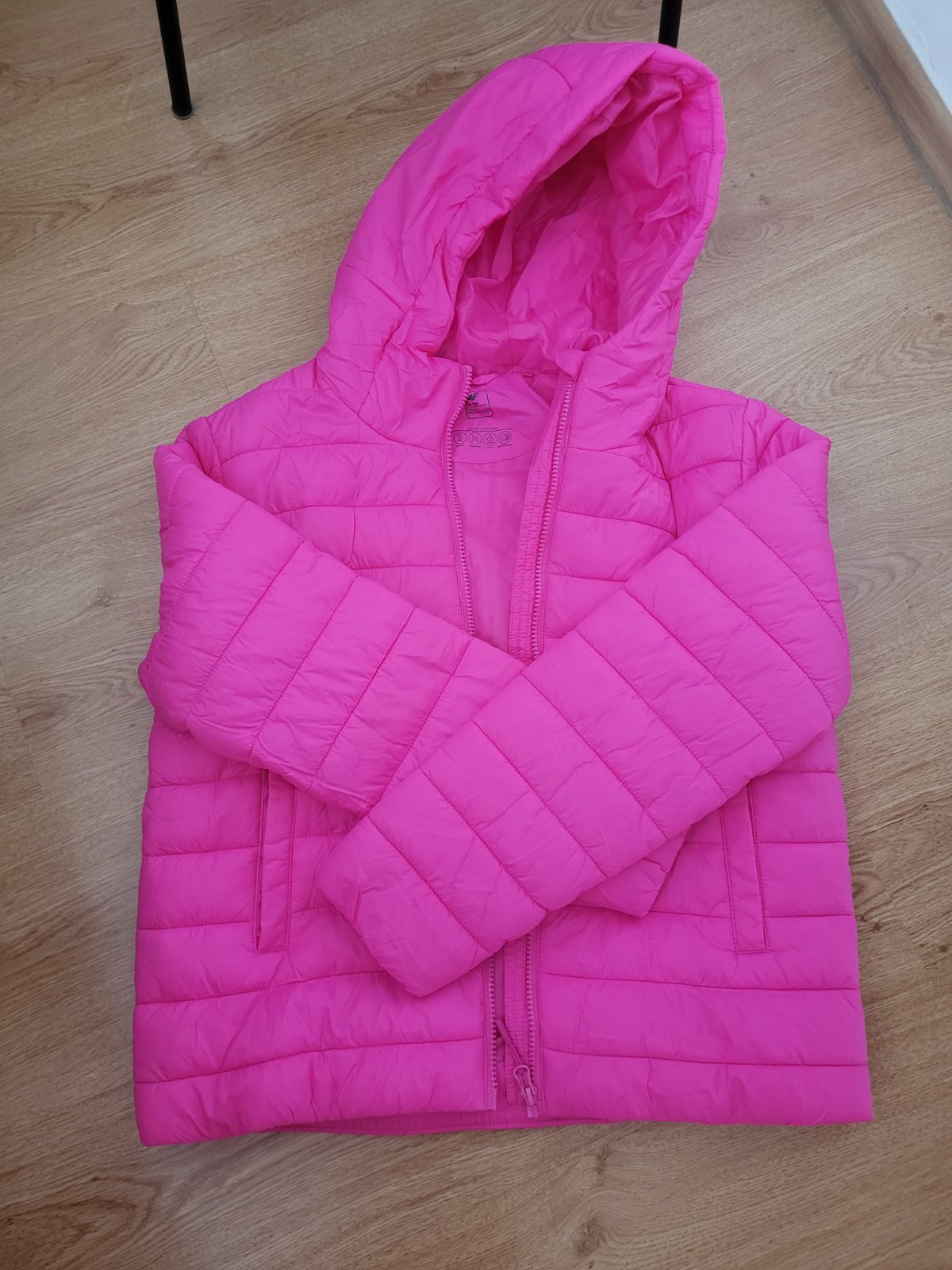 Cena sa ráta určená cena + poštovné Kvetinová ružová prechodná vetrovka, nosená ale vo veľmi dobrom stave (mierne ožmolkovaná na chrbte, kde sa nosila školská taška a trošku pozaťahovaná na jedno...