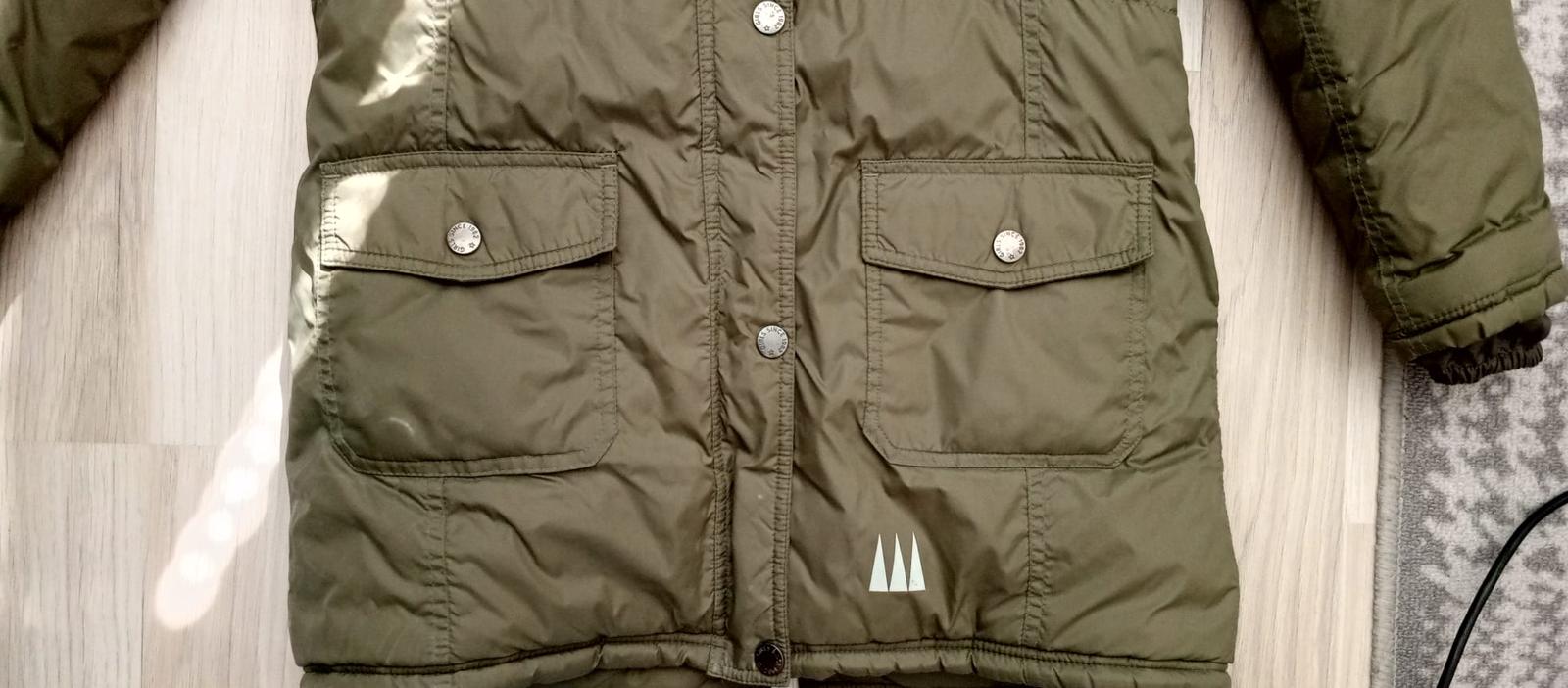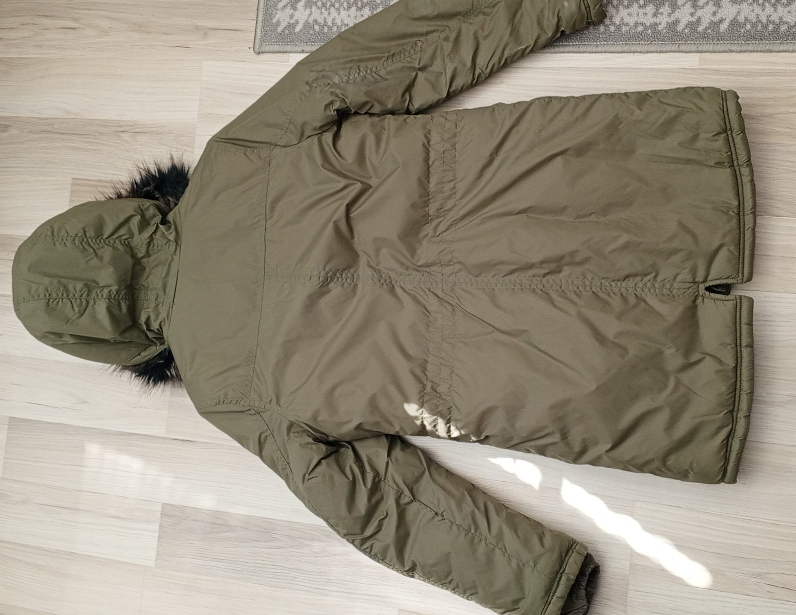 Bunda vhodná na zimu. Vnútro teplé, kapucňa napevno, vrecká. Zadny diel dlhší ako predný. Bunda nosená dcérou, bez poškodení. Rukáv s patentom proti podfúknutiu. Veľkosť 158/164. Značka Y.F.K. Dĺžk...