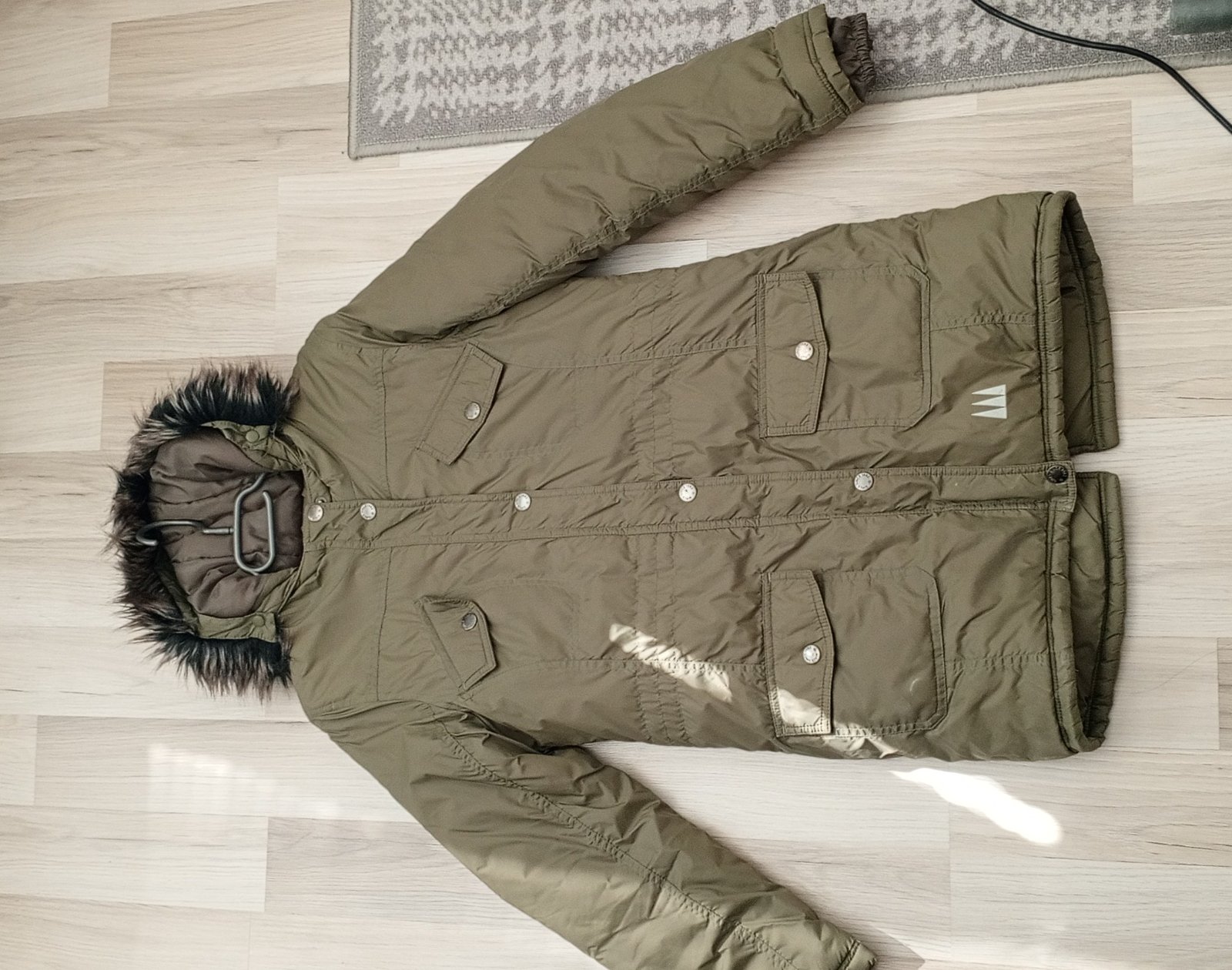 Predám dievčenskú zimnú bundu, príjemnú, teplú, army style, kapucňa vyšitá, skvelo sedí. 2 vonkajšie vrecká Nosena jednu sezónu.