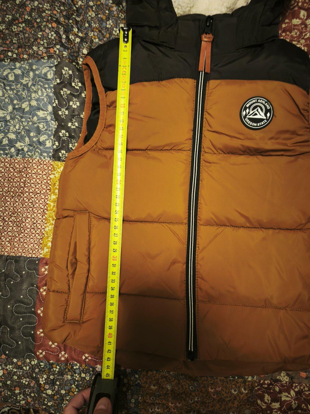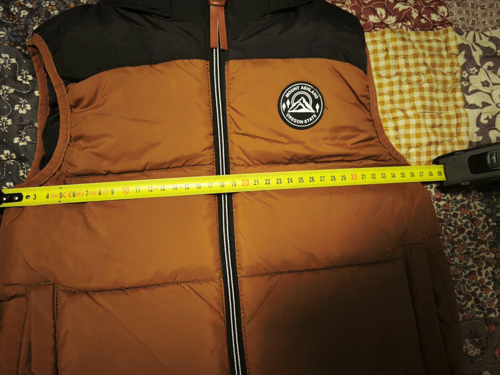 Teplá zimná vesta. Bez poškodení, zips plne funkčný. V peknom stave. Dĺžka od ramena po spodok: 45cm. Šírka: 41cm.