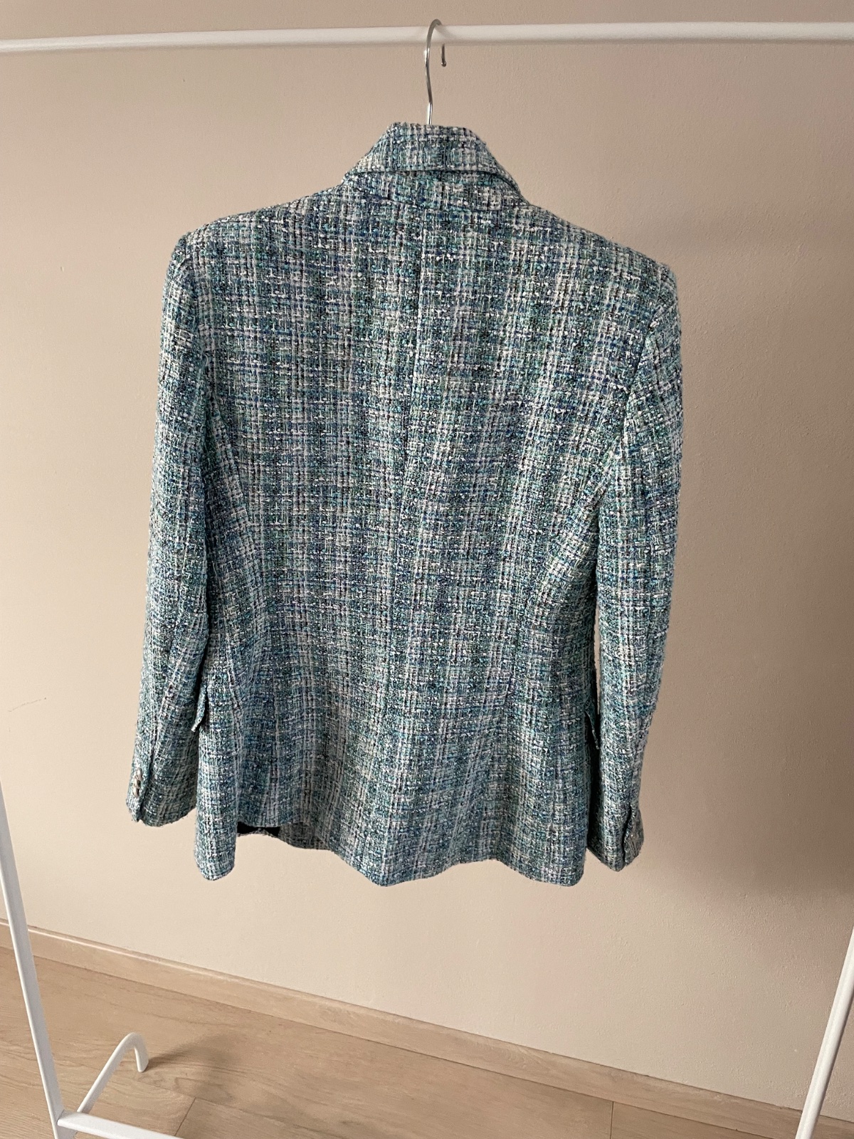 Damske sacko, tkanina pripomina channel style. Raz oblecene. Velmi kvalitne