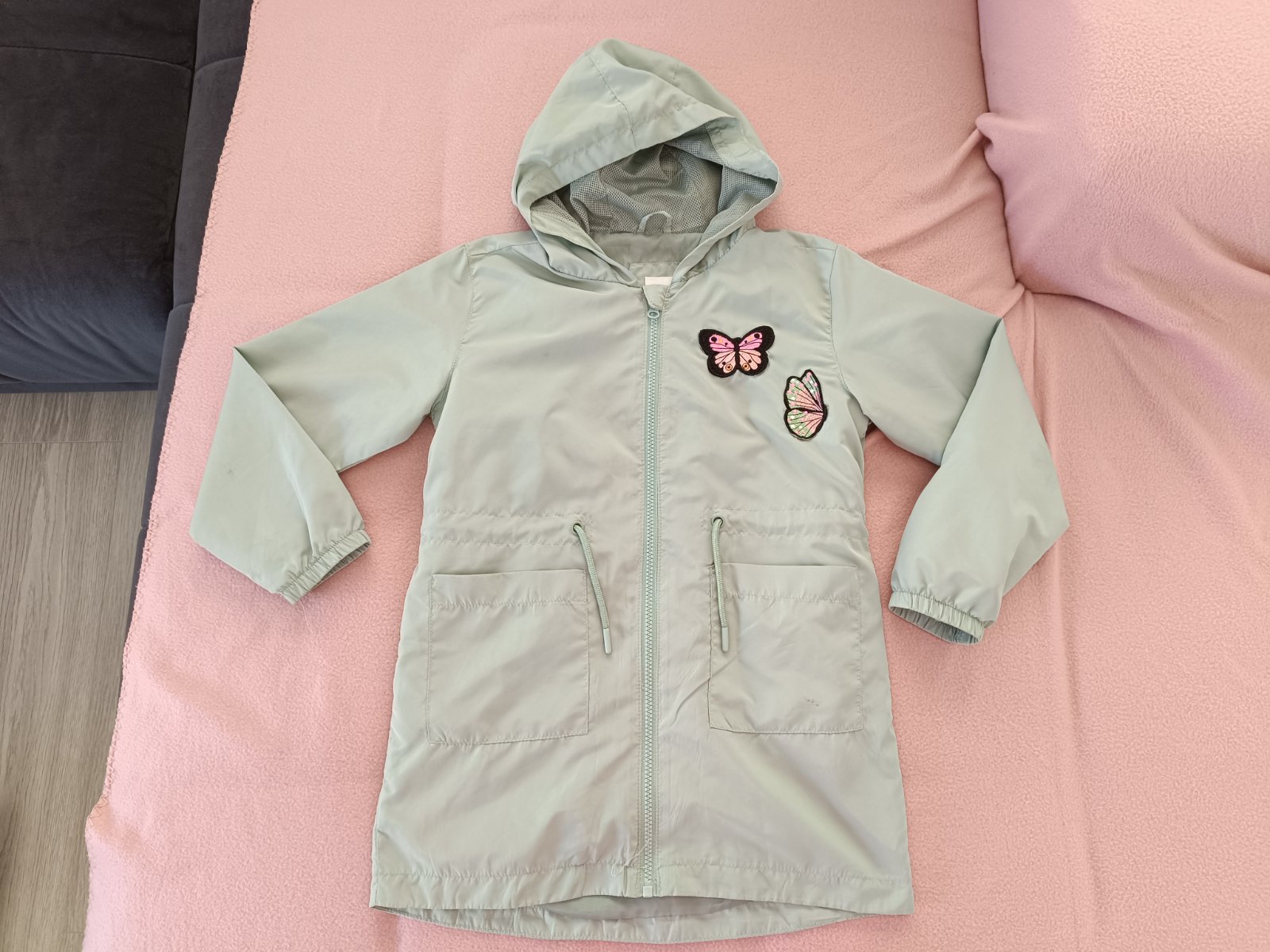 kabátik, kabát, plášť na prechodné obdobie veľkosť 134-140, značka BHS, bledozelená farba. rozmery: rukav od krku 59cm, rukav od ramenneho svika 43,5cm, sirka pod pazuchami 2x50cm, dlzka cez chrb...