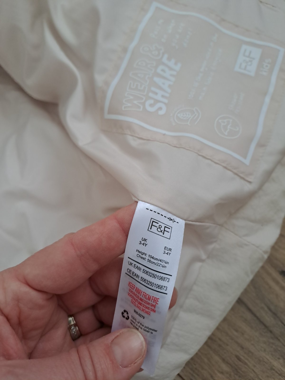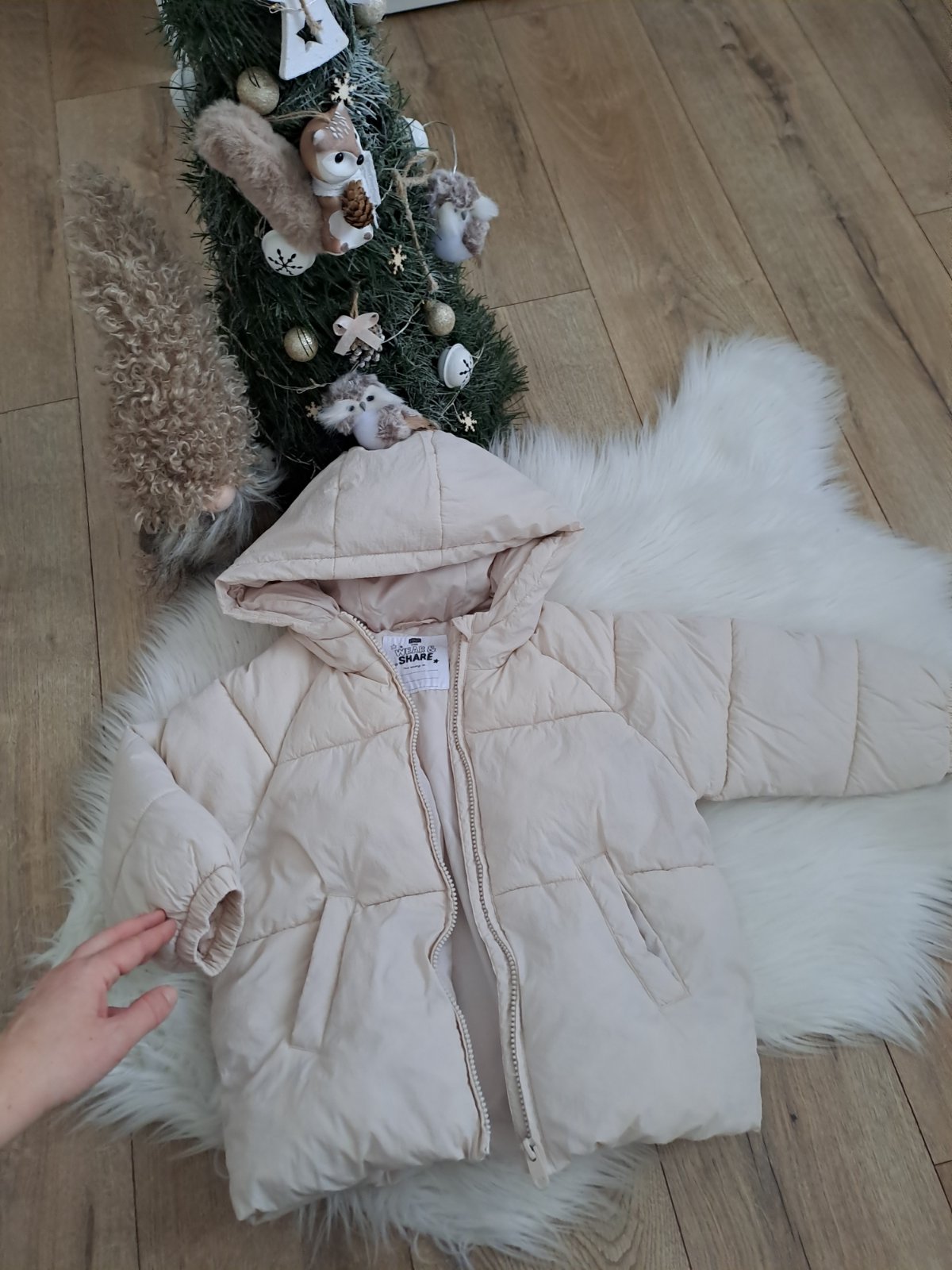 Nosena bunda v zachovalom stave. Na predlakti vidno niečo cierne na obidvoch stranách inak bez poskodenia. Nieje to moc vidno,kvoli vzoru bundy. Vek 3-4r