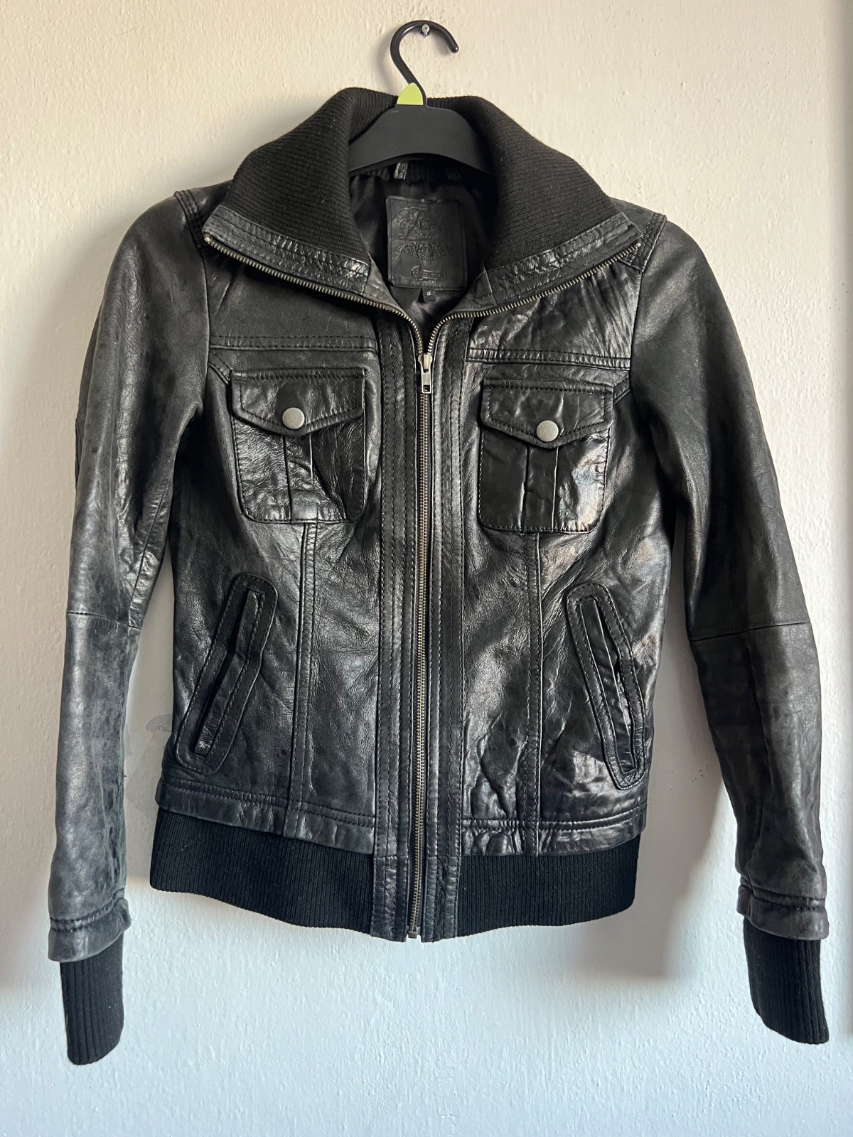 Stradivarius kozena bunda S prava koza cierna Malo nosena