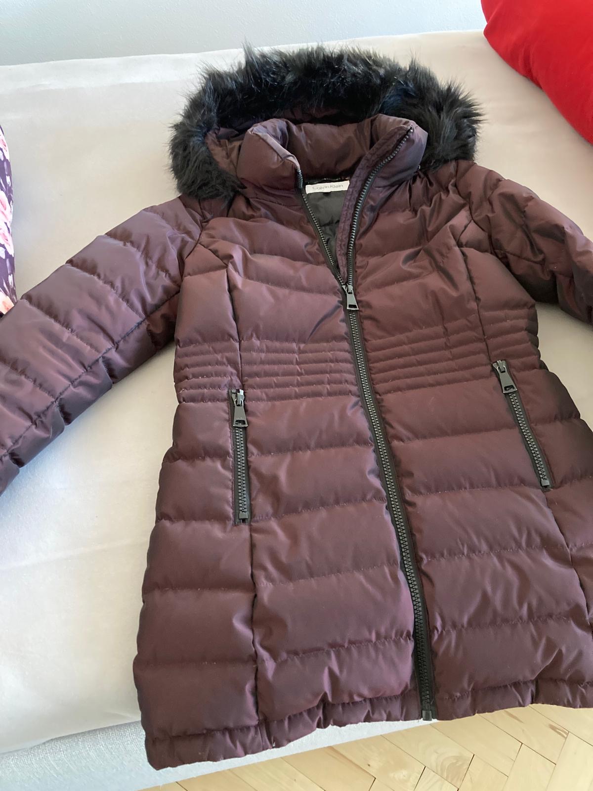 Predam luxusny kabat / predlzena vetrovka / bunda / parka znacky Calvin Klein vinovocervenej farby - prva fotka zodpoveda najlepsie skutocnej farbe. Kabat je paperovy, teply. Je nadherny, top stav. V pripade rychlej platby, dohoda na cene mozna.