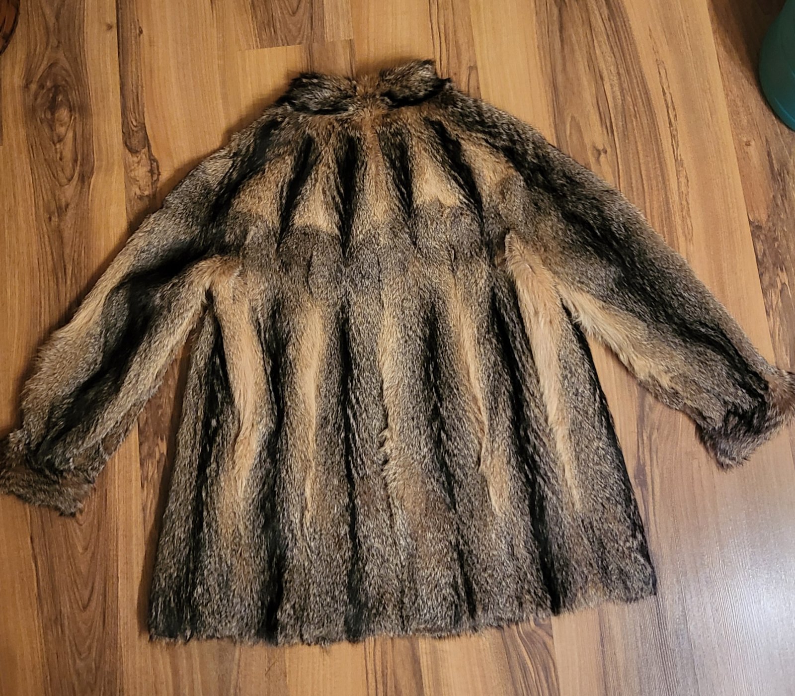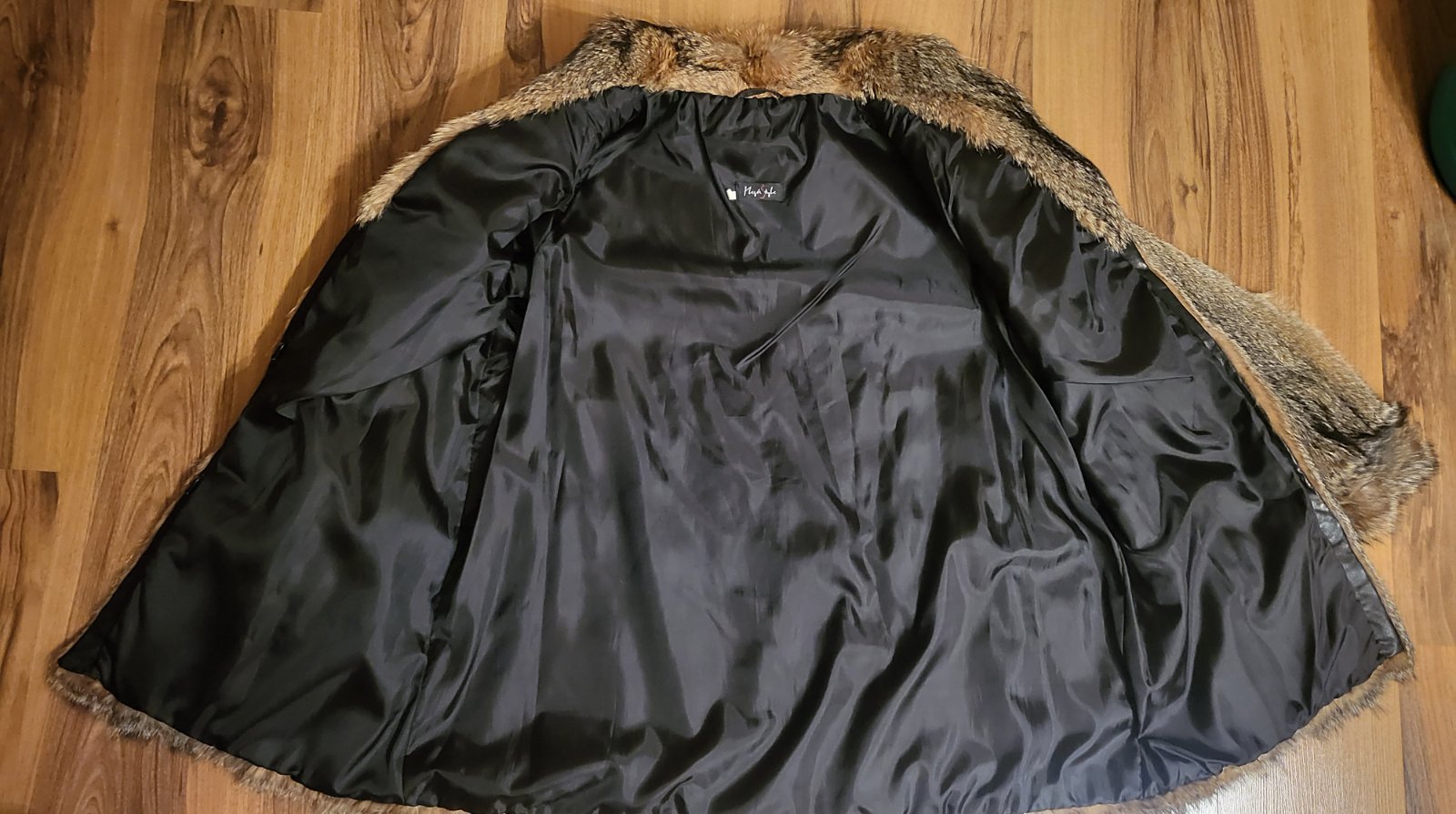 Perfektný stav,pravá kožušina, skladovaný skôr nenosený, podšívka nepoškodená, veľkosť XXL ale sadne kludne od M.Dve bočné vrecká. Dĺžka 81cm,rukáv od golira 75cm,obvod hrudníka 2x57cm,strih do A.