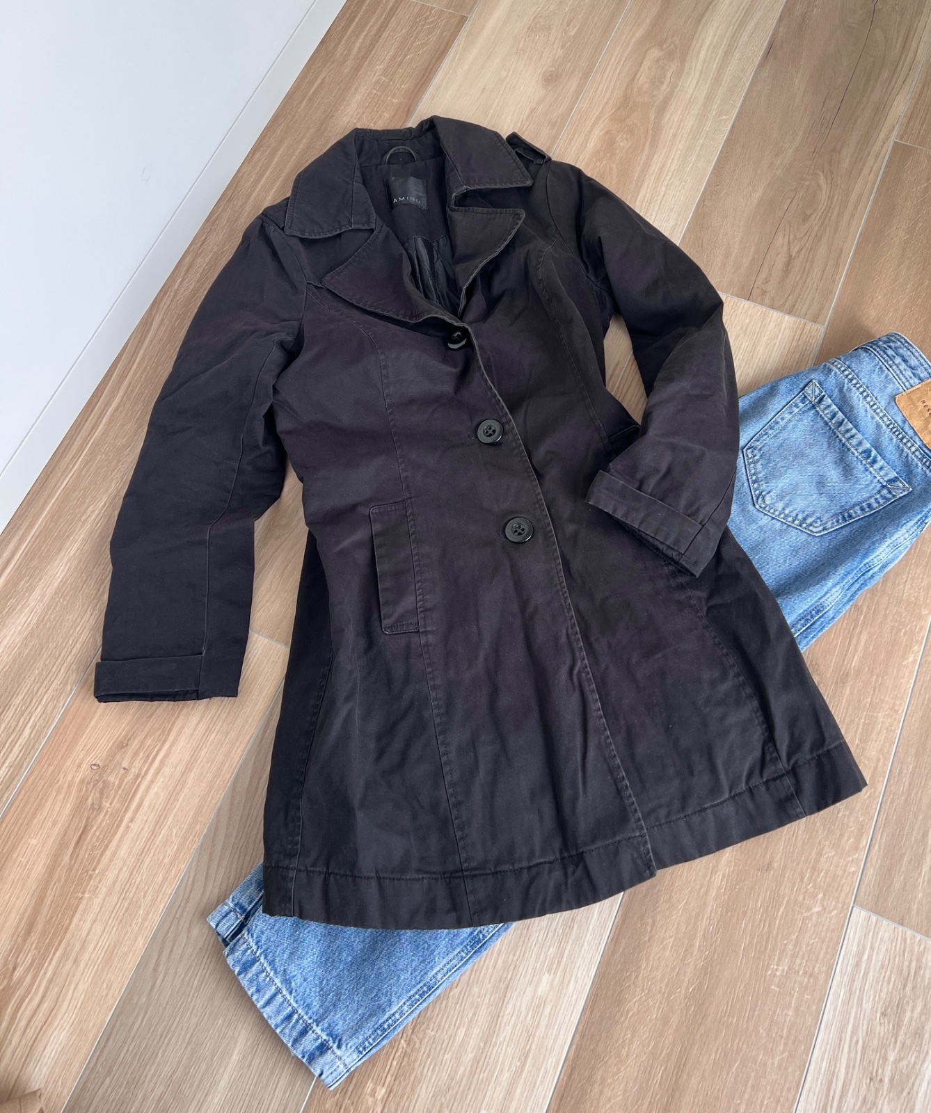 Elegantný kabát v klasickom strihu čiernej uhlovej farbe, ktorý sa hodí ku všetkému. Pohodlný, praktický, ideálny na jar a jeseň. Stav veľmi dobrý, bez chýb.