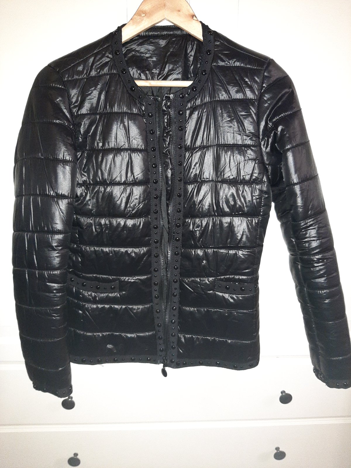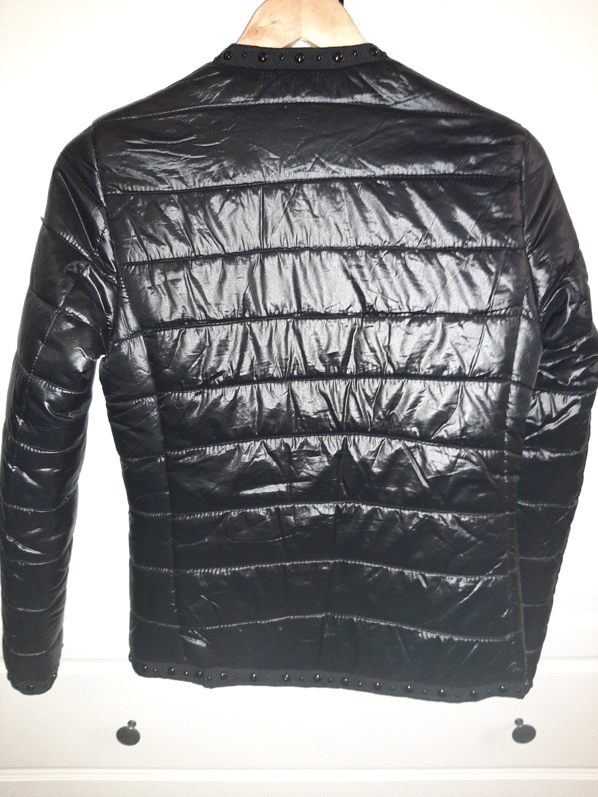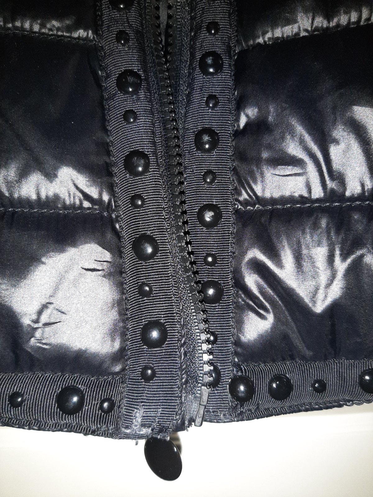 Vo veľmi dobrom stave. Žiadne závažnejšie nedostatky nemá, jedine podšívka je zašívaná, keby o tom neviem ani si to nevšimnem 😉, jeden kamienok z rukáva odlepený, z vnútornej strany takže nevidno, a jeden na zadnom diele, ale nepoznať 🙂. Nositeľná ako xs alebo 164. Cena prispôsobená.