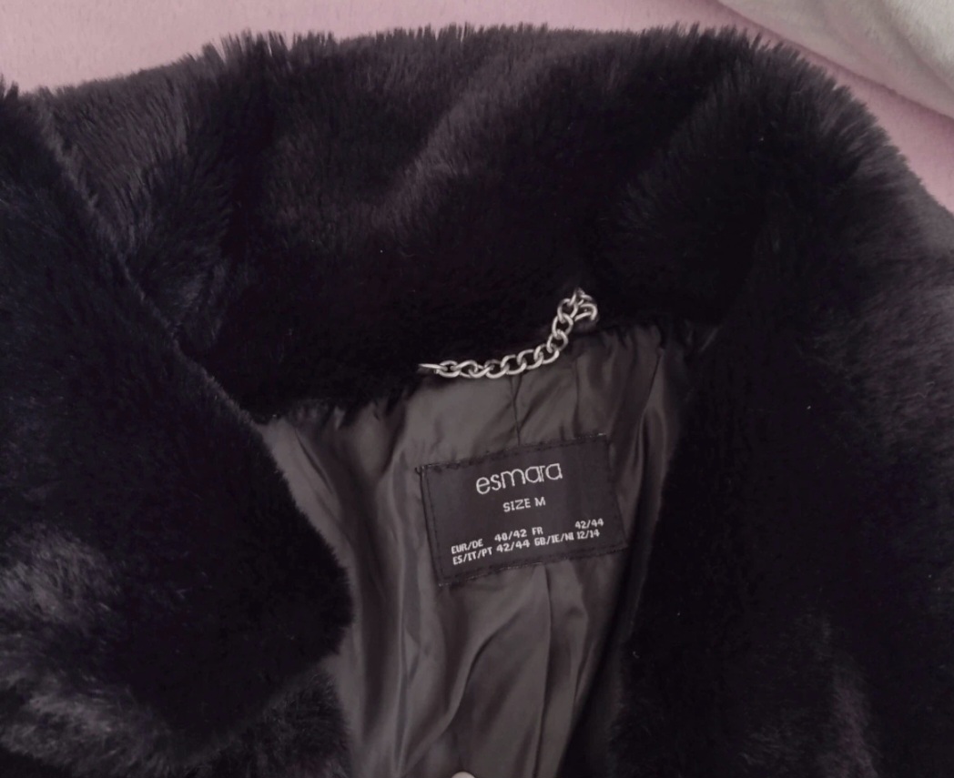 Cierny kozusok TOP STAV velkost M, zostihujuci strih, vacky po bokoch, zspinsniw na cvoky. Je nadherny,